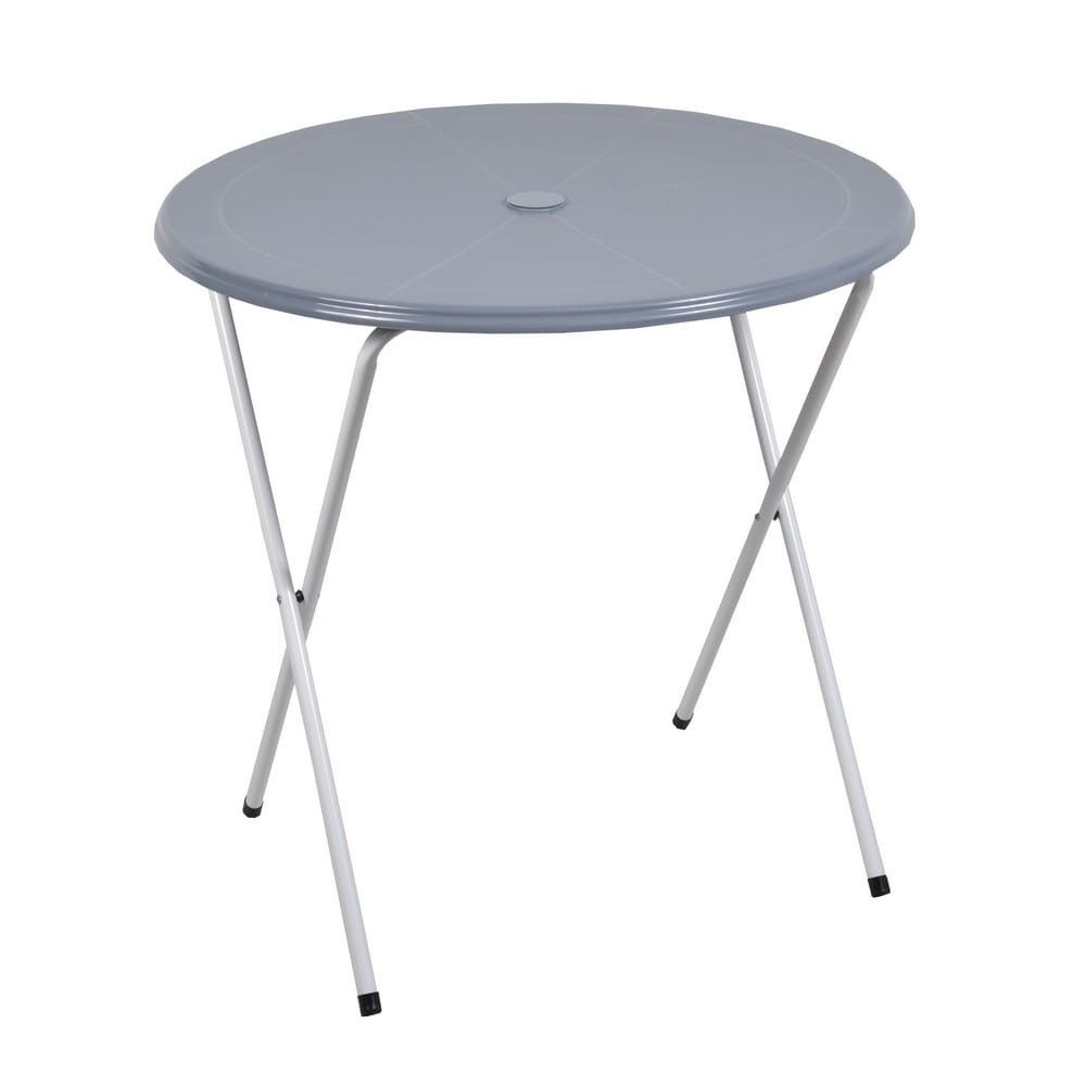 Розкладний балконний стіл TOPAZ в центрі стільниці має отвір для парасольки і відкидні ніжки, які можна скласти і поставити під стільницю під час транспортування або зимового зберігання.