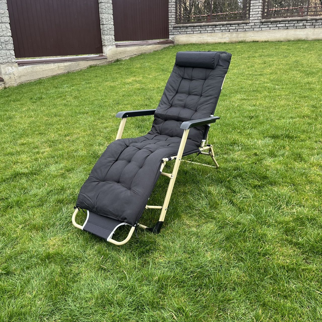 Садовий шезлонг тканинний + матрац IdealGarden Чорний