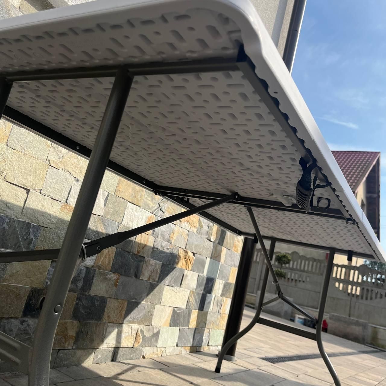 Прямокутний розкладний кейтеринговий стіл чи стіл для пікніка, який ідеально підходить для особливих подій вдома і на природі. Завдяки спеціальній конструкції розкладання столу займає всього кілька секунд. Крім того, стіл можна скласти навпіл, що економить місце в приміщенні або при транспортуванні.