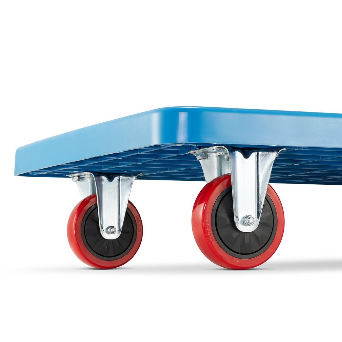 Візок складський платформовий HIGHER®️, 4-колісний з вантажопідйомністю до 300 кг, з поліуретановими колесами діаметром 12,5 см (задні 2 колеса поворотні на 360°)