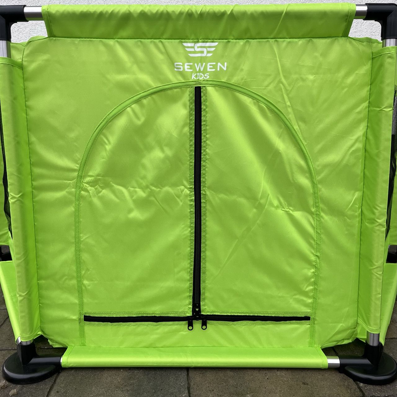 Манеж изготовлен из прочной ткани в сочетании с нержавеющей сталью, можно использовать долгие годы. Трубки из нержавеющей стали в сочетании с большими подставками обеспечат устойчивость ручки. С 5 сторон имеется сетка, которая позволяет наблюдать за происходящим внутри, а также обеспечивает адекватную циркуляцию воздуха. Манеж имеет вход на тройную молнию для удобного входа и выхода.