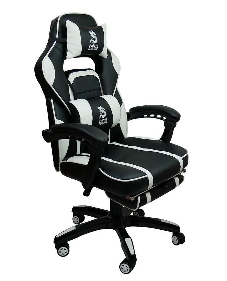 Крісла DEUS PRO GAMING - це спортивні сидіння найвищої якості з повністю регульованою спинкою і висувною підставкою для ніг. Характерною особливістю бренду є висока якість матеріалів, з яких виготовляються ці часто енергійно та довго використовувані крісла. Багато годин за грою на цьому кріслі – справжнє задоволення, а додаткові подушки, що підтримують голову та поперек, лише підсилюють відчуття високого комфорту.Механіка крісла виготовлена з високоякісної сталі, тому вам не доведеться турбуватися про поломку поперечини чи підлокітника. Усі пластикові елементи, які легко пошкоджуються під час інтенсивного використання крісла, зведені до мінімуму.Модель GAMER DEUS LARGE - це спортивне крісло, яке задовольнить вимоги навіть найвибагливішого гравця. Інтенсивні вставки – це гідна ін’єкція адреналіну та бадьорості на довгі години, проведені перед комп’ютером чи консоллю.Технічні дані та параметри: Максимальна висота: 125 см Максимальна висота до сидіння: 53 см Мінімальна висота до сидіння: 43 см Розмір сидіння: 54х47 см Загальна ширина з підлокітниками: 68 см Мінімальна висота до підлокітників 65 см Ширина підставки: 66 см Максимальне навантаження: 120 кг Колір: чорний/білий Матеріал: високоякісна екошкіра М'які підлокітники Плавне регулювання спинки з блокадою Прогумовані колеса - не дряпають підлогу Регульована висота, поворот на 360 градусів М'яка висувна підставка для ніг В комплекті дві подушки Час складання: 5-10 хвилин