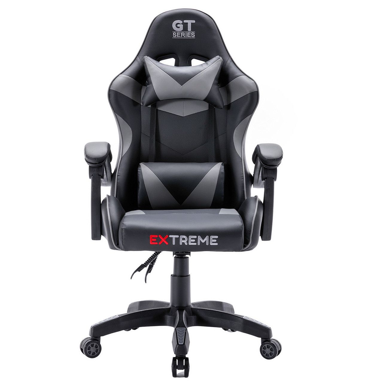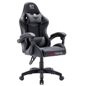 Ігрові крісла Extreme GT — це спортивні сидіння з плавно регульованою спинкою та подушками. Бренд Extreme характеризується високою якістю матеріалів, які застосовуються для виробництва цих часом енергійно і довго використовуваних крісел. Грати годинами на цьому кріслі – справжнє задоволення, а додаткові подушки для підтримки голови та попереку лише підсилюють відчуття високого комфорту. Ідеально підходить для геймерів, а також для людей, які проводять багато годин за комп'ютером або письмовим столом.Характеристики: Висота крісла: 133 см Максимальна висота до сидіння: 51 см Мінімальна висота до сидіння: 41 см Розмір сидіння: 50х49 см Загальна ширина з підлокітниками: 64 см Ширина основи: 65 см Максимальне навантаження: 120 кг Колір: чорно-сірий Матеріал: високоякісна екошкіра М'які регульовані підлокітники - відкидаються разом зі спинкою Плавне регулювання спинки з блокадою Прогумовані колеса, які не дряпають ламінат та дерев'яну підлогу Регульована висота, поворот на 360 градусів У комплект входять дві регульовані подушки
