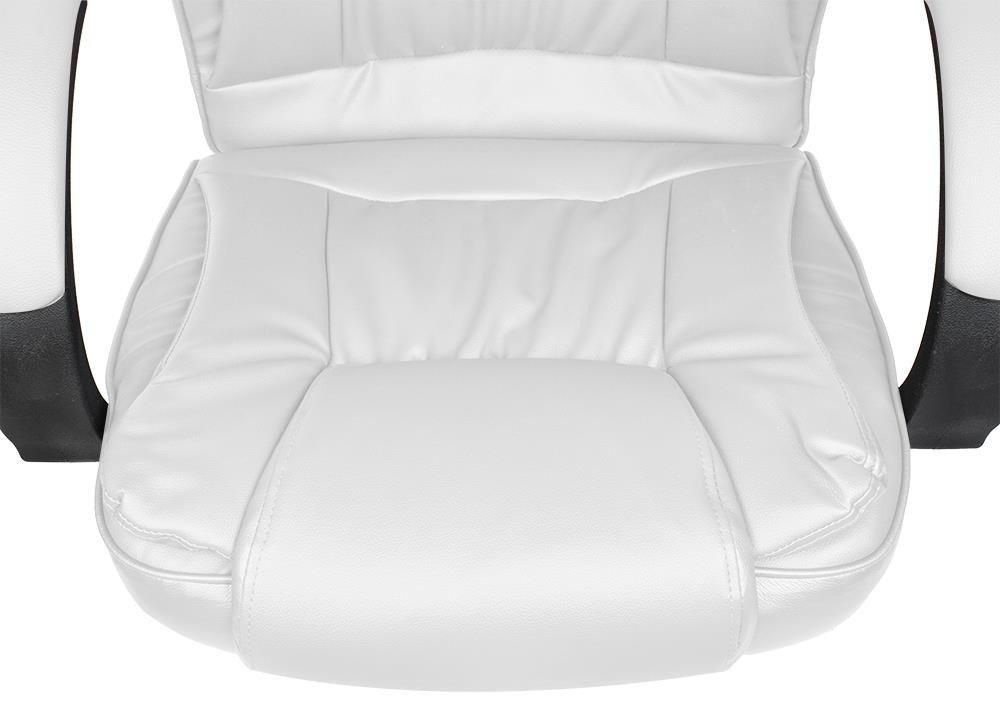 ОФІСНЕ КРІСЛО MALATEC 8984 ЗРУЧНІСТЬ - зручні, широкі сидіння та спинка ідеально підходять до силуету сидячої людини. Високий вбудований підголівник і відповідний профіль гарантують функціональність і підтримку голови. Підлокітники правильної форми, що підвищує комфорт використання, а також навантаження на хребет. ГУМОВІ КОЛЕСА - використання гумових коліс допомагає запобігти подряпинам на підлозі, і порізам на килимі. Колеса роблять підлогу безпечною, а переміщення на них тихе та комфортне. П'ятизіркова основа з подвійними коліщатками забезпечує стабільне пересування. РЕГУЛЮВАННЯ - крісло можна підлаштувати під індивідуальні потреби, завдяки чому ми отримуємо неймовірний комфорт використання. Висота сидіння регулюється. Крім того, функція TILT дозволяє розгойдувати і нахиляти крісло, що дозволить вам на мить розслабитися (його можна зафіксувати в заданому положенні). ШВИДКИЙ І ЛЕГКИЙ МОНТАЖ - весь процес складання крісла швидкий, легкий і приємний. Це не повинно тривати більше 10 хвилин. Завдяки використанню еко шкіри крісло легко миється, для цього потрібна лише волога ганчірка. Крім того, крісло має знімний чохол, який можна прати при низькій температурі.ХАРАКТЕРИСТИКИ: колір матеріалу: білий; матеріал: еко шкіра; хрестовина: хром; колеса: гумові; механізм: важіль (метелик); розміри (довжина/ширина/висота): 60/63/123 см; регулювання висоти крісла: 113-123 см; регулювання висоти сидіння: 49-59 см; максимальне навантаження: до 130 кг; вага крісла: 16 кг; вага з упаковкою: 17,8 кг.