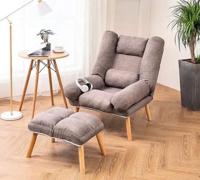 Сучасне розкладне крісло Uszak. Скандинавський стиль. Підставка для ніг в комплектіКолір: сірийРозміри: Максимальна висота: 90 см Розміри сидіння 50x75 см Максимальна ширина: 75 см Розміри спинки 68x75 см Глибина сидіння 50 см Висота до сидіння 43 см Максимальне навантаження: 150 кг Розміри підставки для ніг: 42x62 смКрісло Uszak дуже зручне, ідеально підходить для зимових вечорів з чашкою гарячого чаю та улюбленою книгою.Опис виробу: Оббивка преміальними тканинами Високоякісна обробка Дерев'яні ніжки з повстяною обробкою знизу Спинка регулюється в п'яти положеннях