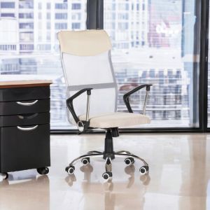 Офісне крісло із сітки Prestige Mesh 003Виготовлене з високоякісних матеріалів, крісло довговічне і стійке до пошкоджень. Чорний, сірий та кремовий кольори є позачасовими та пасують до більшості інтер'єрів.Поворотне крісло - незамінна частина будь-якого офісу. Завдяки ньому робота за столом стає не тільки комфортнішою, але й кориснішою для нашого хребта.Функція TILT в обертовому кріслі дає можливість регулювати кут нахилу спинки. Це дозволяє нам пристосувати крісло до наших уподобань і забезпечити комфорт при тривалому сидінні.Функція TILT особливо корисна для людей, які працюють за столом протягом тривалого часу або потребують перепочинку під час інтенсивної роботи.Крісло з тканиною MESH - це тип тканини з відкритою сітчастою структурою. Вона легка, повітряна і дуже гнучка. Завдяки своїй структурі вона забезпечує належну вентиляцію і відводить вологу від тіла.ХАРАКТЕРИСТИКИ: колір матеріалу: кремовий; матеріал: сітка + наповнювач (сидіння), сітка (спинка); хрестовина: хром; колеса: гумові; механізм: важіль (метелик); розміри (довжина/ширина/висота): 58/54/116 см; регулювання висоти крісла: 106-116 см; максимальне навантаження: до 120 кг; вага крісла: 11 кг; глибина сидіння 48 см; ширина сидіння 48 см; висота спинки 68 см; ширина спинки 46 см; довжина підлокітників: 32 см;