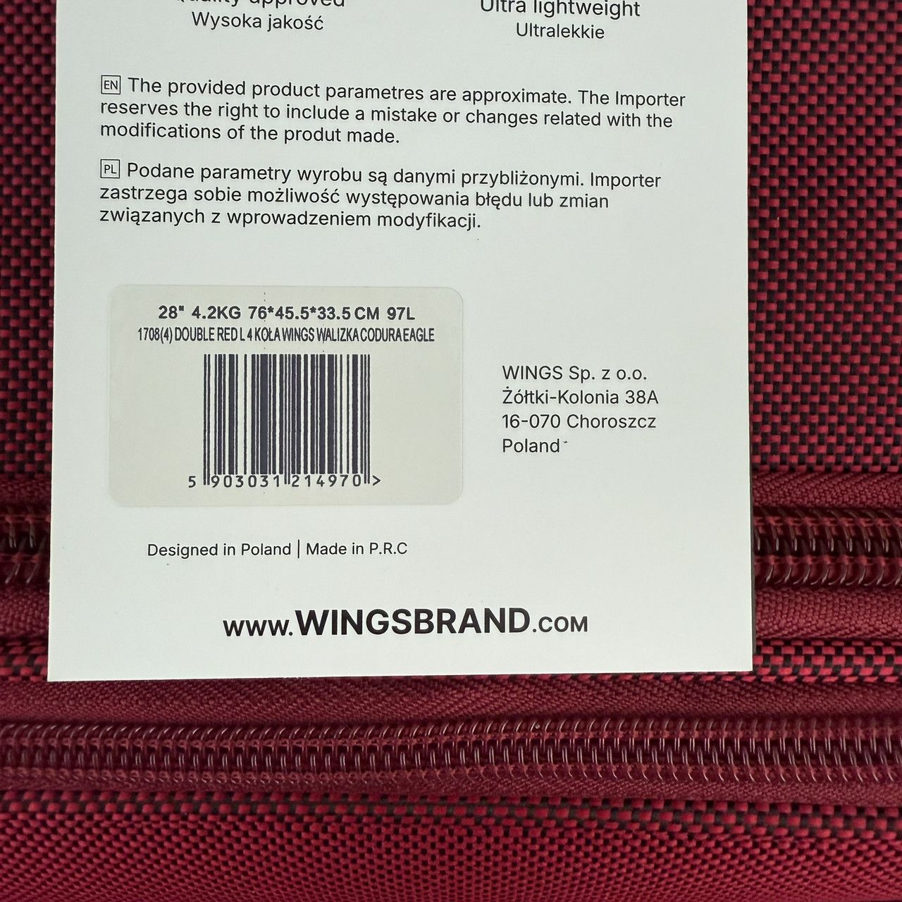 Чемодан тканевый большой на 4 колесах Wings 1708 L Бордовый