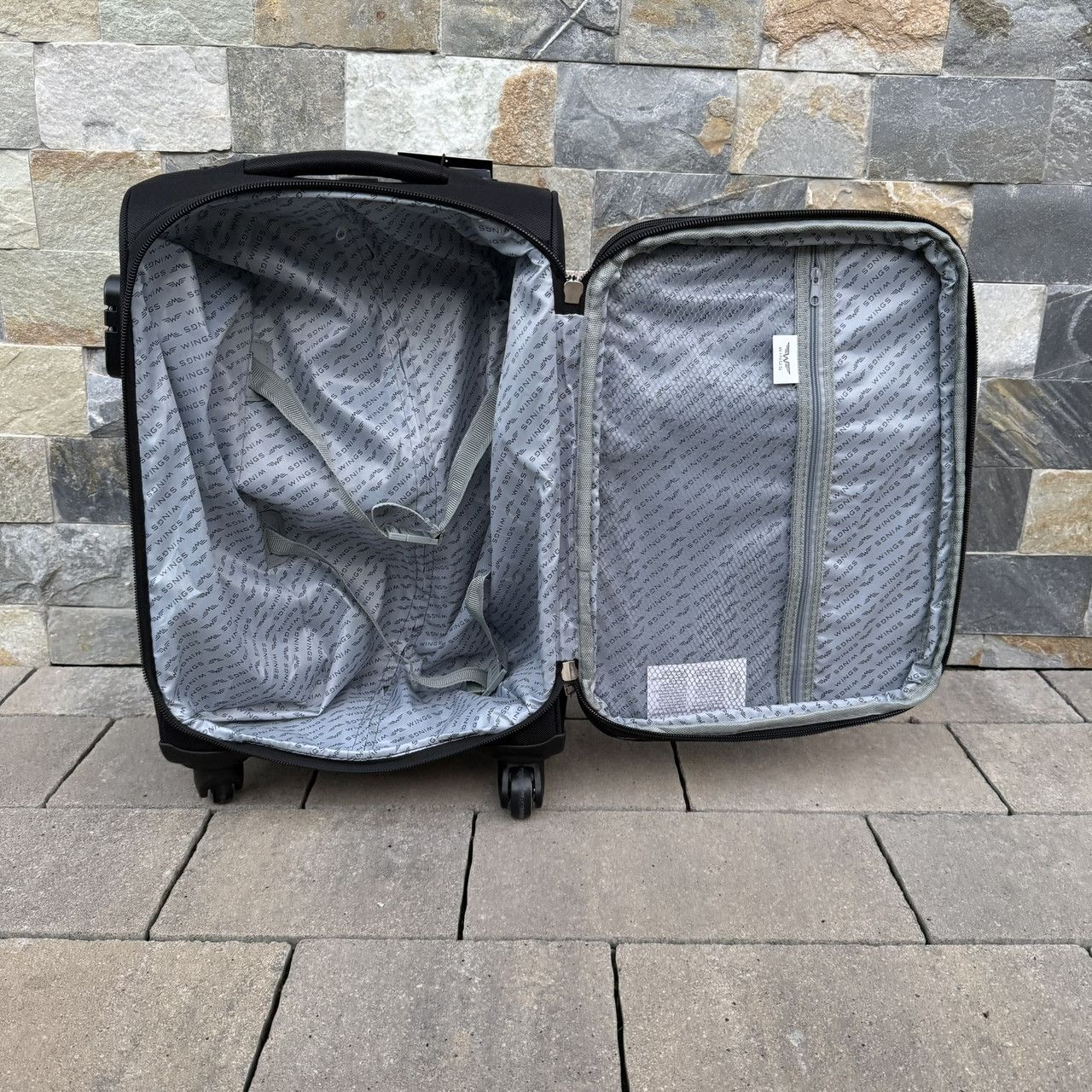 Чемодан имеет две надежные ручки (сверху и сбоку) для переноски его в вертикальном или горизонтальном положениях. Его можно поставить как в вертикальном так и горизонтальном положении – для этого есть пластиковые ножки внизу и сбоку чемодана. Большое количество карманов и внутренних отделений позволяет комфортно разместить разные группы вещей отдельно друг от друга – это и два больших внешних карманов с отдельными молниями на передней стороне чемодана и внутренний карман из прочной сетки. И, конечно же, основное вместительное отделение, которое имеет специальные ремешки для фиксации багажа. А если вдруг что-то не поместилось, вы всегда можете воспользоваться расширением до 5 см и увеличить объем вашего чемодана. Для защиты вашего багажа, чемодан оснащен встроенным кодовым замком. Молнии, закрывающие основное отделение, имеют специальные «собачки», которые заходят в кодовый замок.