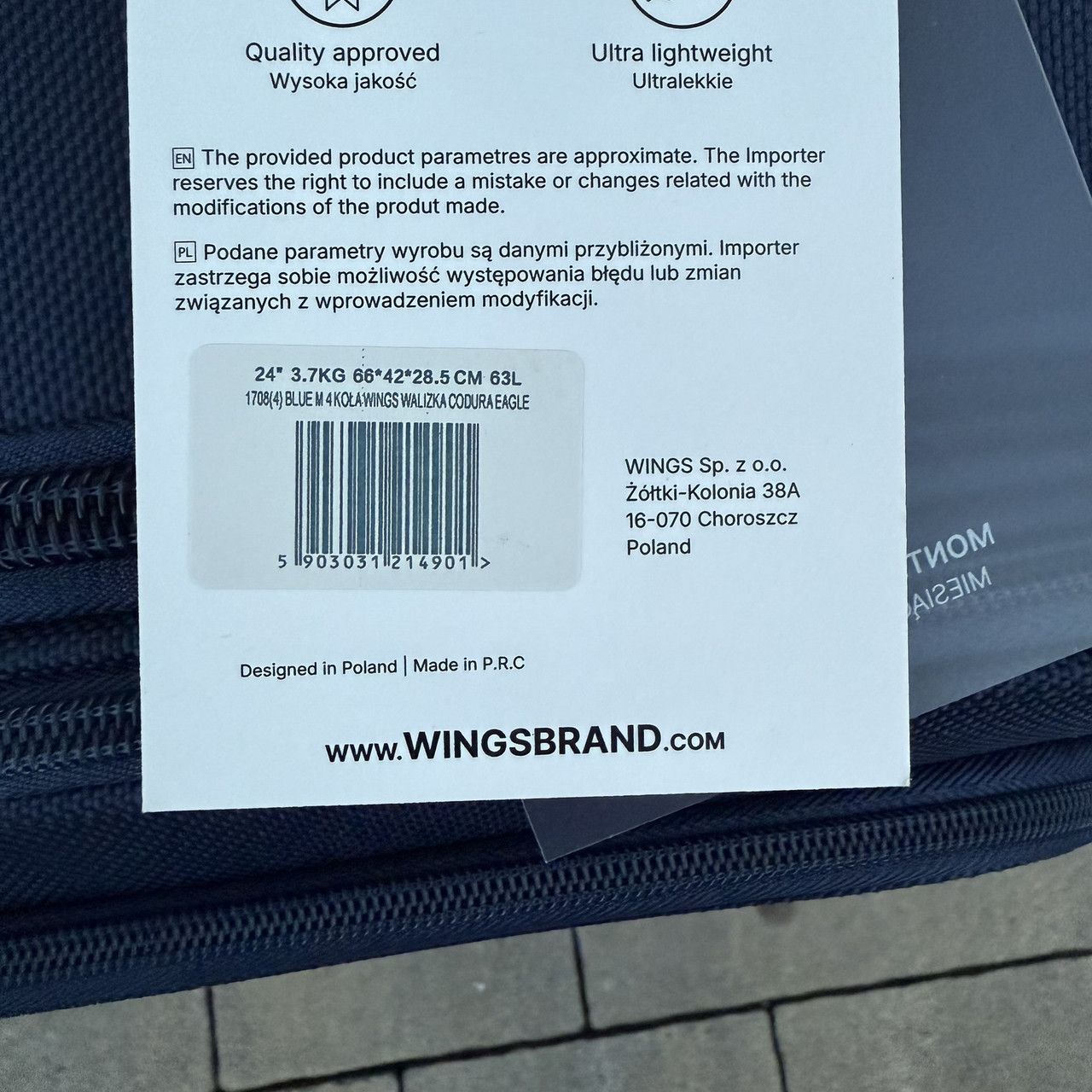 Чемодан тканевый средний на 4 колесах Wings 1708 M Синий
