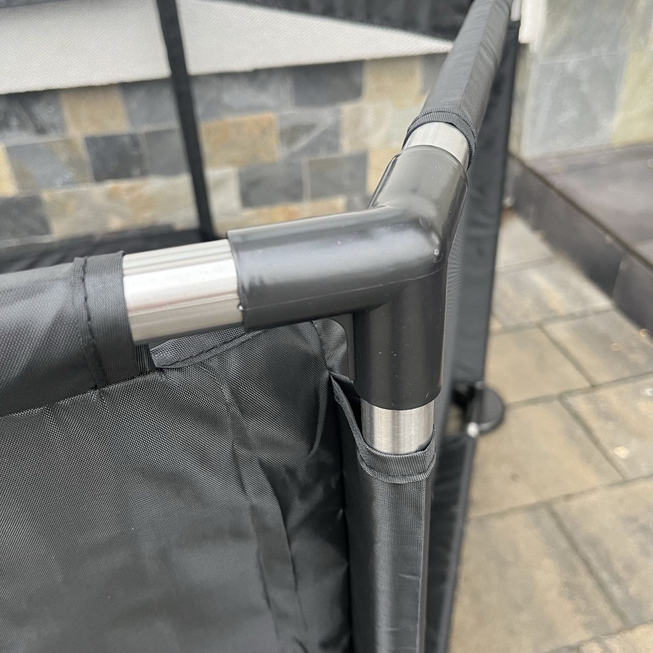 - НАДІЙНІСТЬ - Манеж виготовлений з трубок з нержавіючої сталі, в порівнянні з пластиковими трубками наших конкурентів, наш манеж прослужить Вам довгий час. Також використовуються широкі підставки, які забезпечують стійкість манежу та його нерухомість.