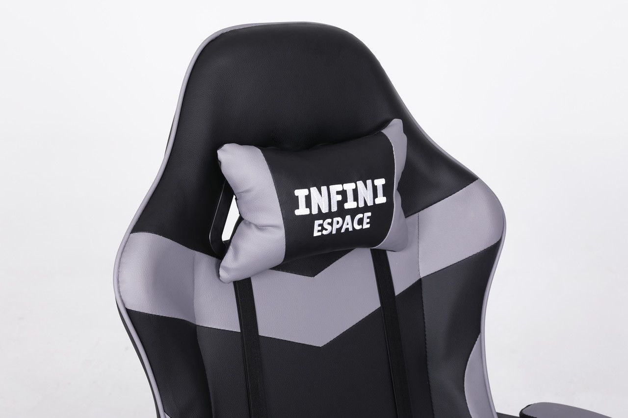 Ігрові крісла INFINI ESPACE — це комп'ютерні крісла з плавно регульованою спинкою та подушками. Бренд INFINI характеризується високою якістю матеріалів, які застосовуються для виробництва цих часто енергійно і довго використовуваних крісел. Грати годинами на цьому кріслі – справжнє задоволення, а додаткові подушки для підтримки голови та попереку лише підсилюють відчуття високого комфорту. Ідеально підходить для геймерів, а також для людей, які проводять багато годин за комп'ютером або письмовим столом.