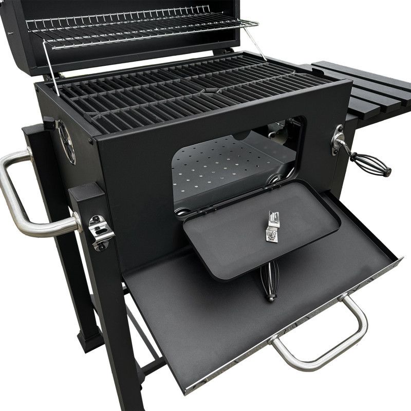 Помимо большой чугунной решетки, которая обеспечивает достаточно места для приготовления пищи на гриле, барбекю также оснащено функциями, которые упрощают процесс.