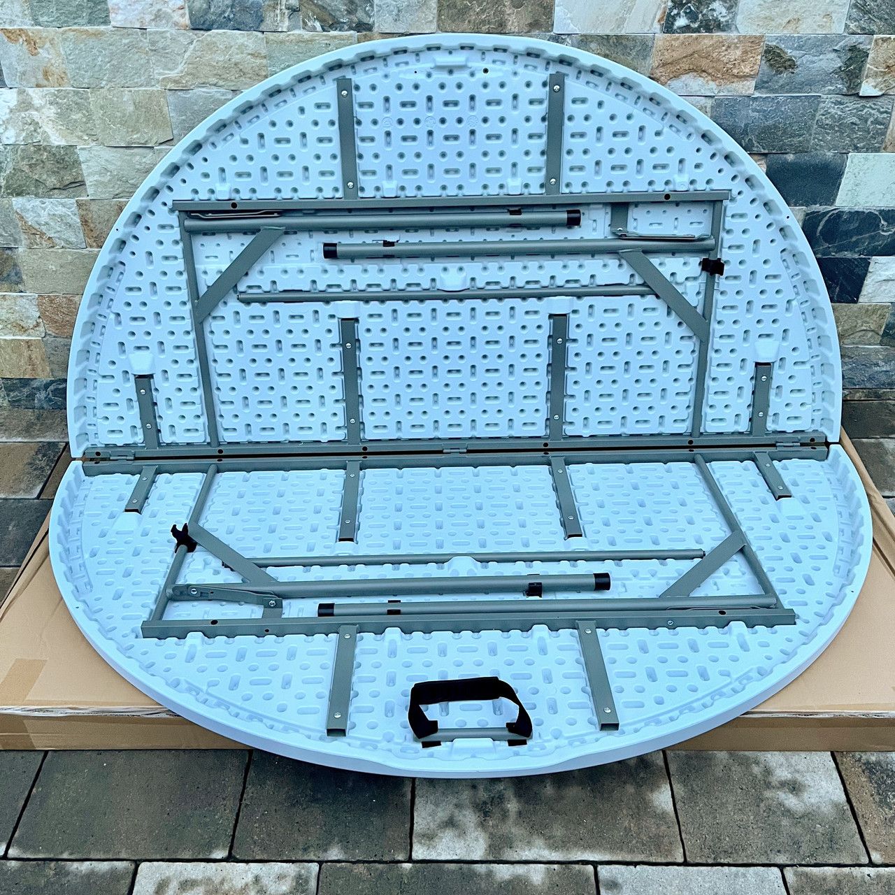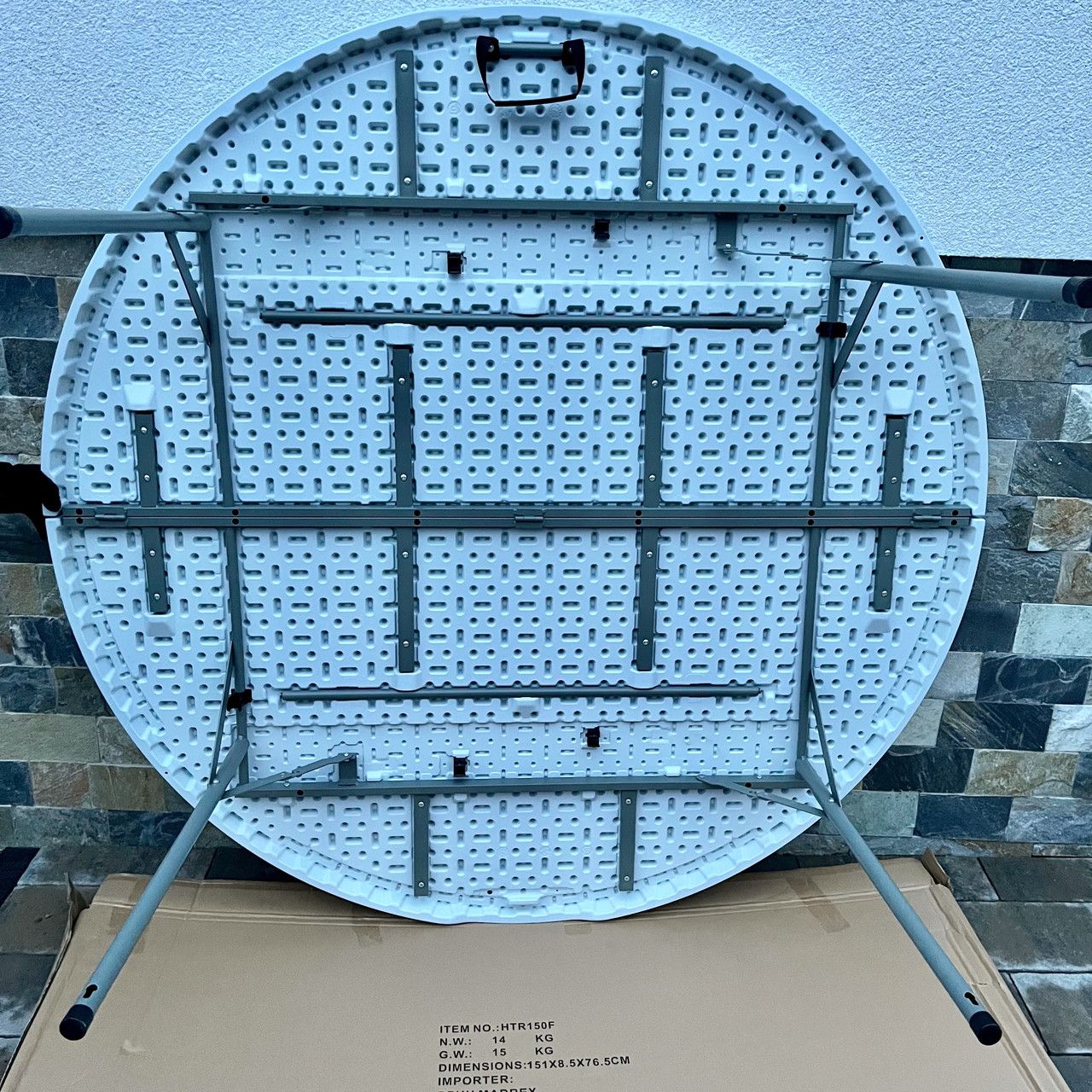 Большой, прочный и надежный кейтеринговый стол диаметром 153 см с очень широким спектром использования. Он идеально подходит для всех видов мероприятий на открытом воздухе, как стол для банкетов, приемов и конференций, а также для торговли. Стол полностью разборной, поэтому в сложенном виде занимает очень мало места, а также имеет практичную ручку для переноски. Прочная конструкция, максимальная функциональность и простота использования.
