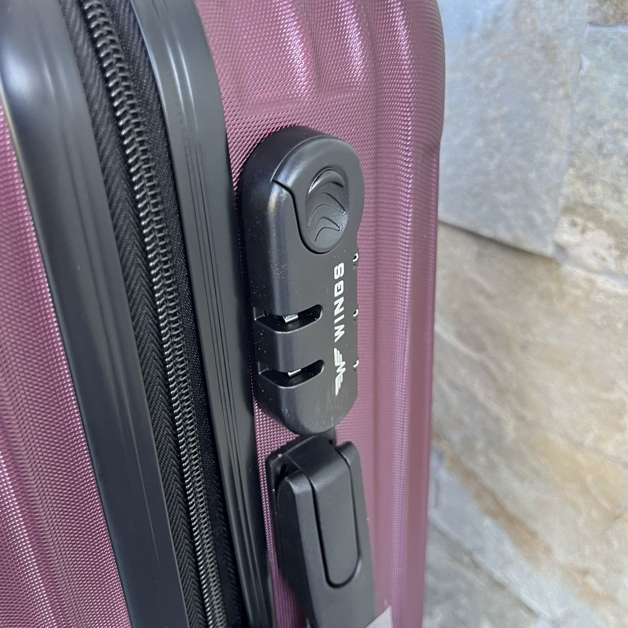 Подвійні, поворотні на 360° коліщатка та телескопічна ручка забезпечують легкість маневрування та керування валізою. Чорний колір ручки додає елегантності та підкреслює сучасний дизайн. Безпека забезпечується кодовим замком, який простий в експлуатації і забезпечує захист від небажаного відкриття валізи. Внутрішній простір валізи - це добре продуманий простір, який дозволяє ідеально організувати ваші речі. Вона має два основних відділення - одне на ременях, що ідеально підходить для одягу та великих речей, і друге відділення на блискавці. Додаткова невелика кишеня на блискавці забезпечує швидкий доступ до найнеобхідніших речей. Валіза Egret від Wings ідеально підходить для потреб кожного мандрівника, забезпечуючи комфорт та елегантність у будь-якій подорожі.