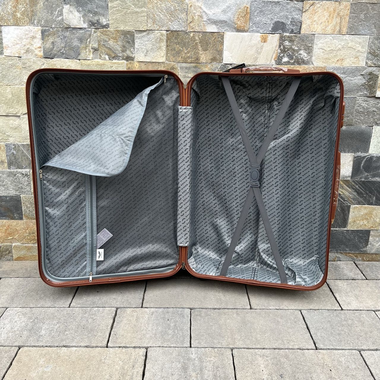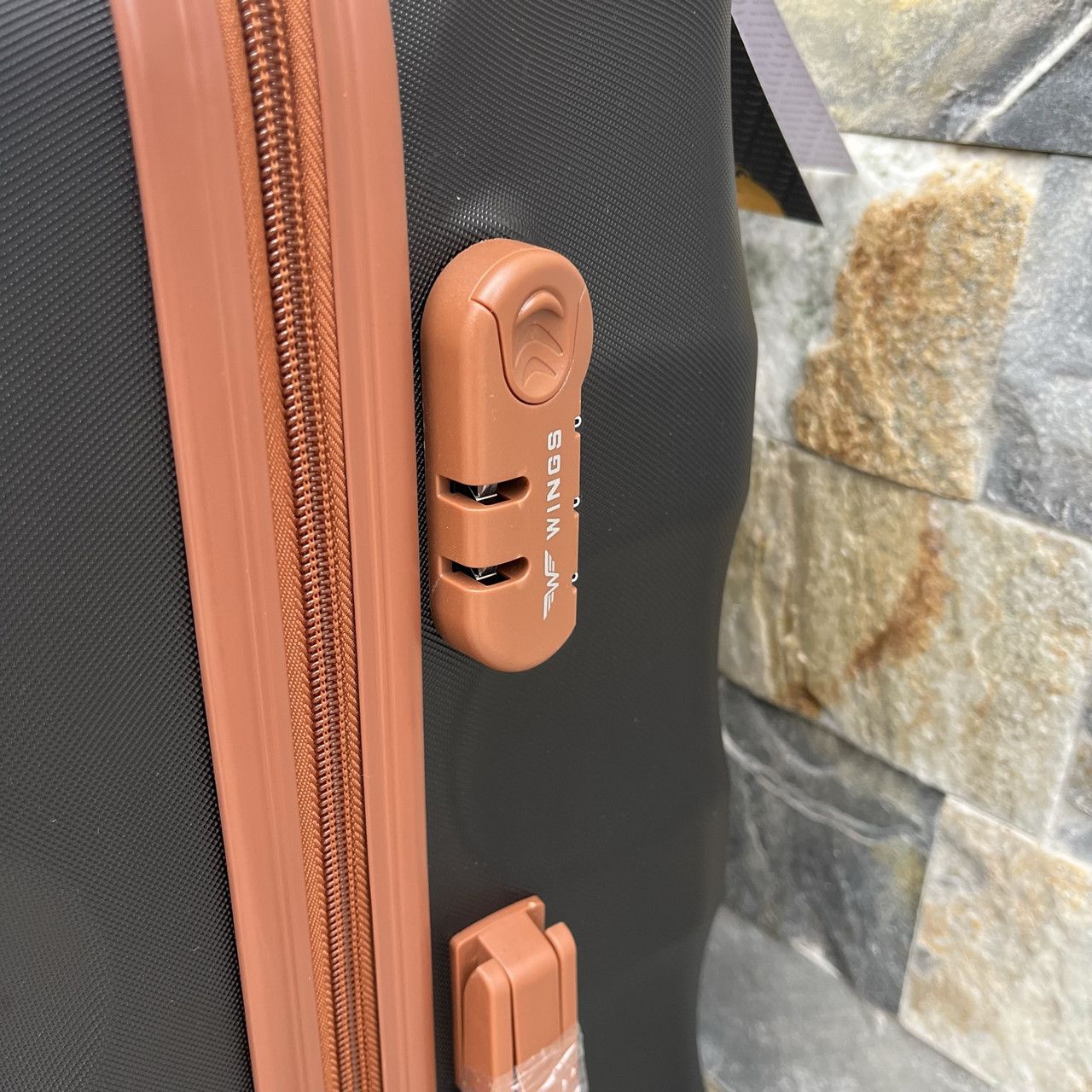 Розкішний валізу відомої компанії WINGS для самих вимогливих клієнтів. Сучасна, легка модель з дуже міцного і стійкого до подряпин пластику ABS Plus з дворівневою телескопічною ручкою. Зовнішні, приємні на дотик прогумовані ручки і кодовий замок для запобігання несанкціонованого доступу. У валізу вбудований міцний дюралюмінієва каркас. Оснащений чотирма поворотними гумовими колесами , що забезпечують стійкість і легкість руху в кожному напрямку. Інтер'єр світлого кольору розділений блискавкою на дві функціональні камери.