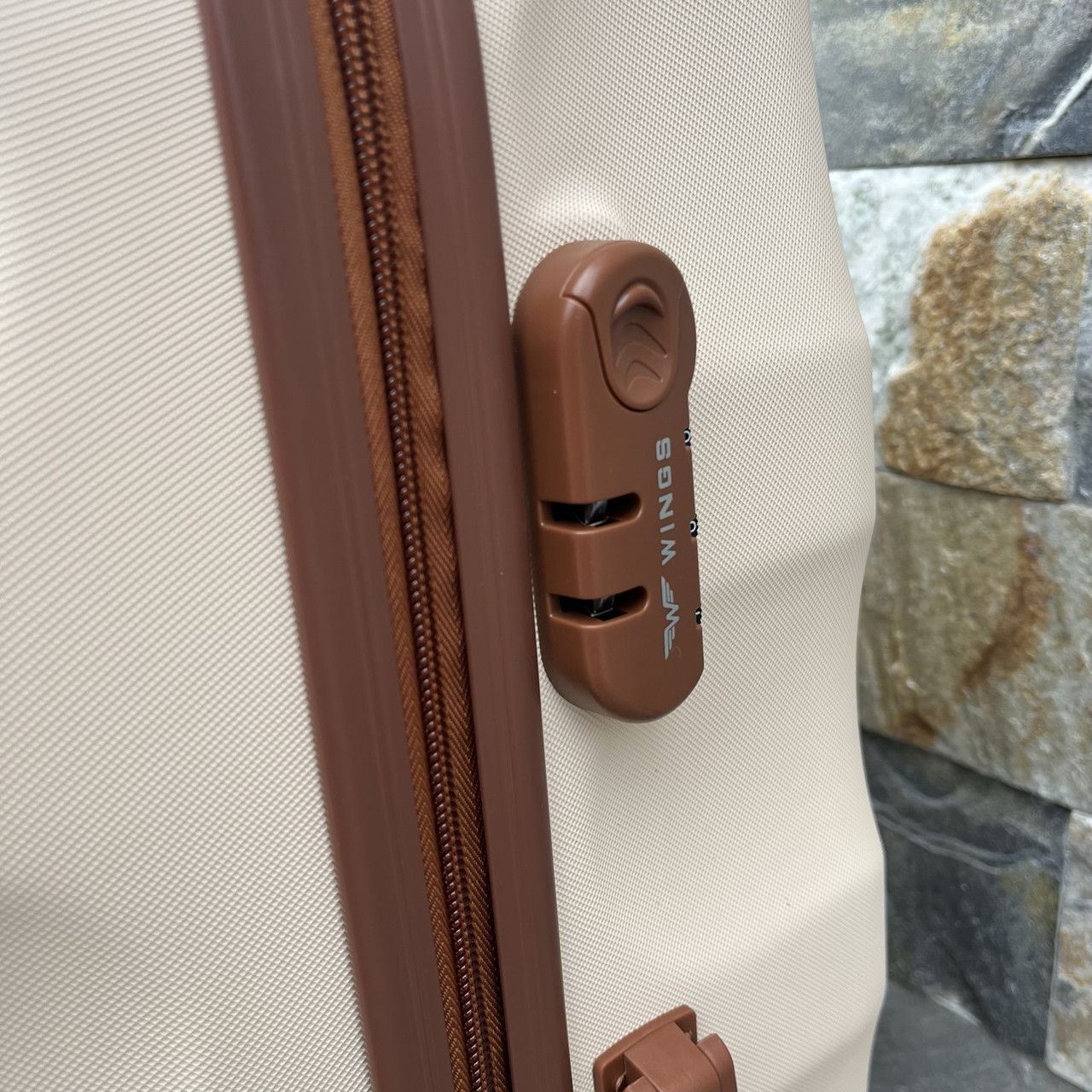 Розкішний валізу відомої компанії WINGS для самих вимогливих клієнтів. Сучасна, легка модель з дуже міцного і стійкого до подряпин пластику ABS Plus з дворівневою телескопічною ручкою. Зовнішні, приємні на дотик прогумовані ручки і кодовий замок для запобігання несанкціонованого доступу. У валізу вбудований міцний дюралюмінієва каркас. Оснащений чотирма поворотними гумовими колесами , що забезпечують стійкість і легкість руху в кожному напрямку. Інтер'єр світлого кольору розділений блискавкою на дві функціональні камери.