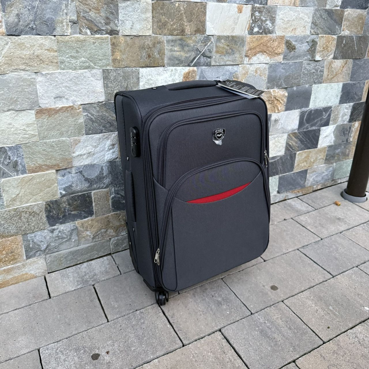 Тканинна валіза на чотирьох колесах Wings 1708 зроблена з надійного і міцного синтетичного тканинного матеріалу – поліестеру марки CODURA 1200D *. Цей матеріал легкий, еластичний, витривалий до пошкоджень та не промокає. Внутрішній каркас надає жорстку форму валізі – ви можете не боятися її навантажити.
