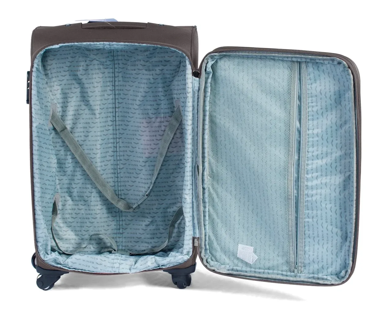 Тканинна валіза на чотирьох колесах Wings 1706 зроблена з надійного і міцного синтетичного тканинного матеріалу – поліестеру марки CODURA 1200D *. Цей матеріал легкий, еластичний, витривалий до пошкоджень та не промокає. Внутрішній каркас надає жорстку форму валізі – ви можете не боятися її навантажити.