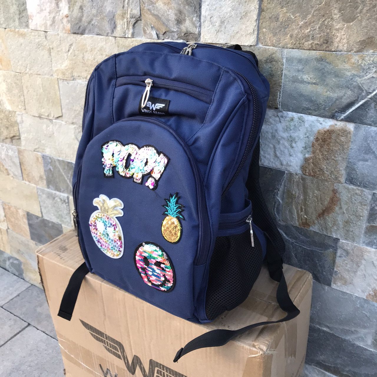 Рюкзак школьный детский с пеналом Wings PATCHES Синий
