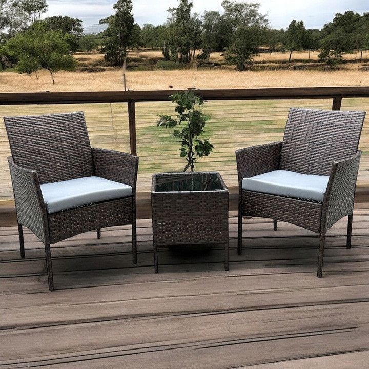 КОМПЛЕКТ САДОВОЙ МЕБЕЛИ IDEAL GARDEN NM04 Удобный садовый набор, изготовленный из высококачественных материалов. Мега комфортен, оснащен столом, двумя креслами и мягкими подушками, создан для отдыха. Если вы планируете уединиться, на столике найдется место для книг, журналов и вкусного кофе – все, что нужно для отдыха. Комплект идеально подойдет для террасы и станет отличным основанием для уголка отдыха вашей мечты. Спецификация: ⭐Цвет - коричневый ⭐Конструкция - сталь с порошковым покрытием, покрытая техноратаном ⭐ Прочный и устойчивый к погодным условиям. ⭐ Устойчив к излучению, в том числе к ультрафиолету. Цвет не тускнеет со временем. ⭐ Легко чистится – все, что вам нужно, это влажная тряпка и немного жидкости. ⭐ Каркас – прочный каркас из металла, покрытый техноратаном, что делает его очень долговечным. Благодаря специальной конструкции и широким ножкам он очень устойчив. ⭐ Столешница – изготовлена из черного закаленного стекла, подходит для использования в помещении и на открытом воздухе. ⭐Подушки - крепкая и водонепроницаемая Мебель будет прекрасным дополнением: ✔️ для террас ✔️ в саду ✔️ на балконах ✔️ в беседках РАЗМЕРЫ:
