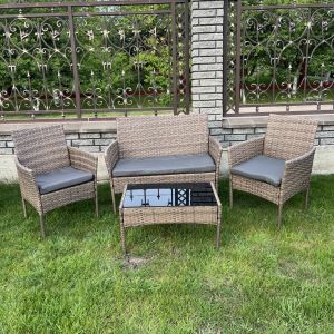 Комплект состоит из дивана, двух кресел и столика (подушки в комплекте)