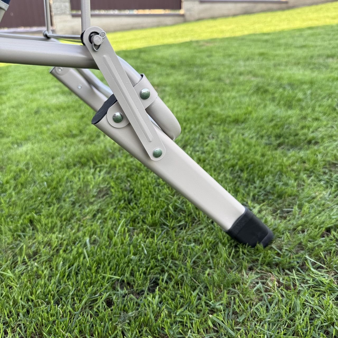 ⭐Каркас - прочный каркас изготовлен из металла, что делает его очень прочным. Специальная конструкция и широкие ножки делают его очень устойчивым. Пластиковые противоскользящие накладки дополнительно стабилизируют весь шезлонг.