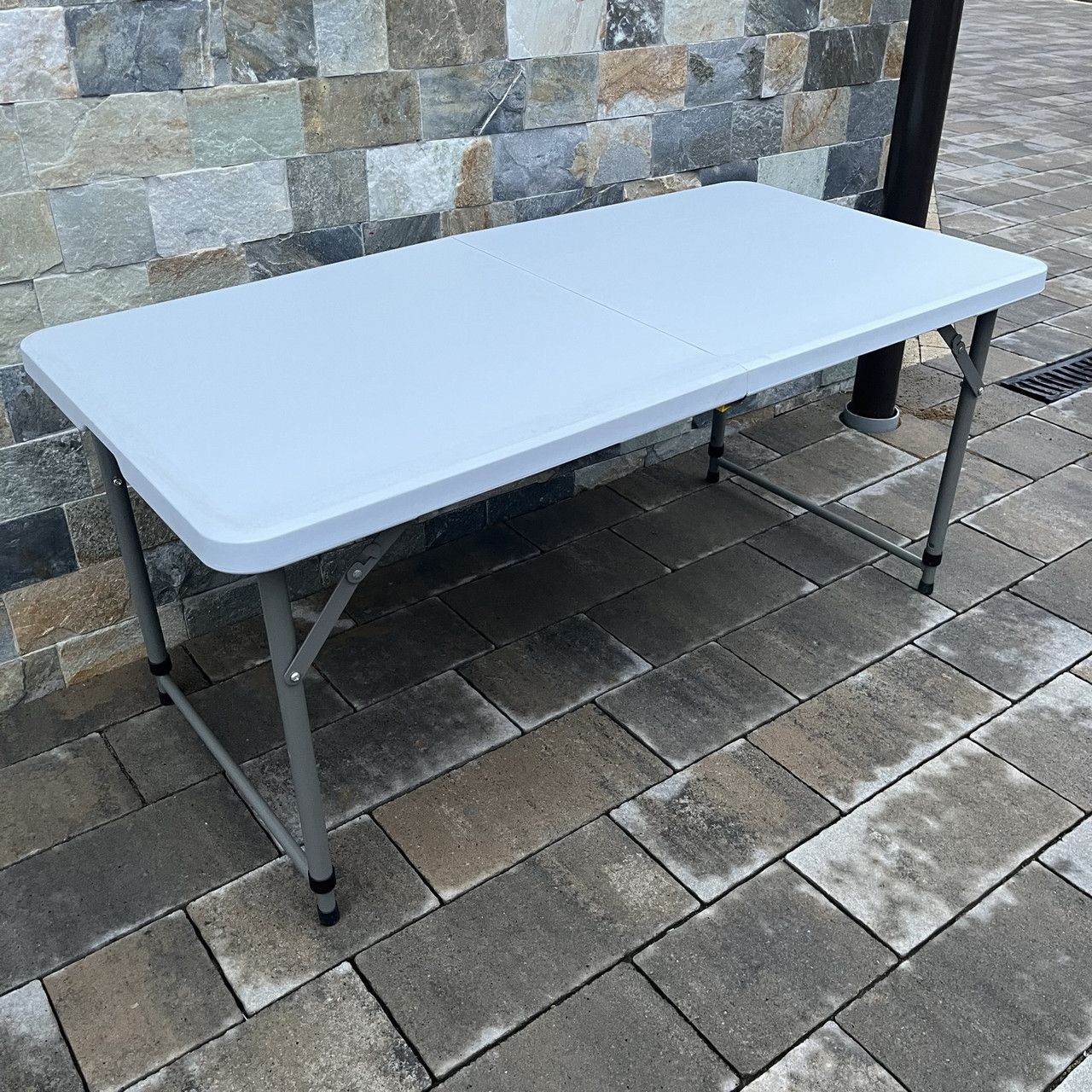 Прямоугольный раскладной кейтеринговый стол или стол для пикника, который идеально подходит для особых событий дома и на природе. Благодаря специальной конструкции раскладывание стола занимает всего несколько секунд. Кроме того, стол можно сложить пополам, что экономит место в помещении или при транспортировке.