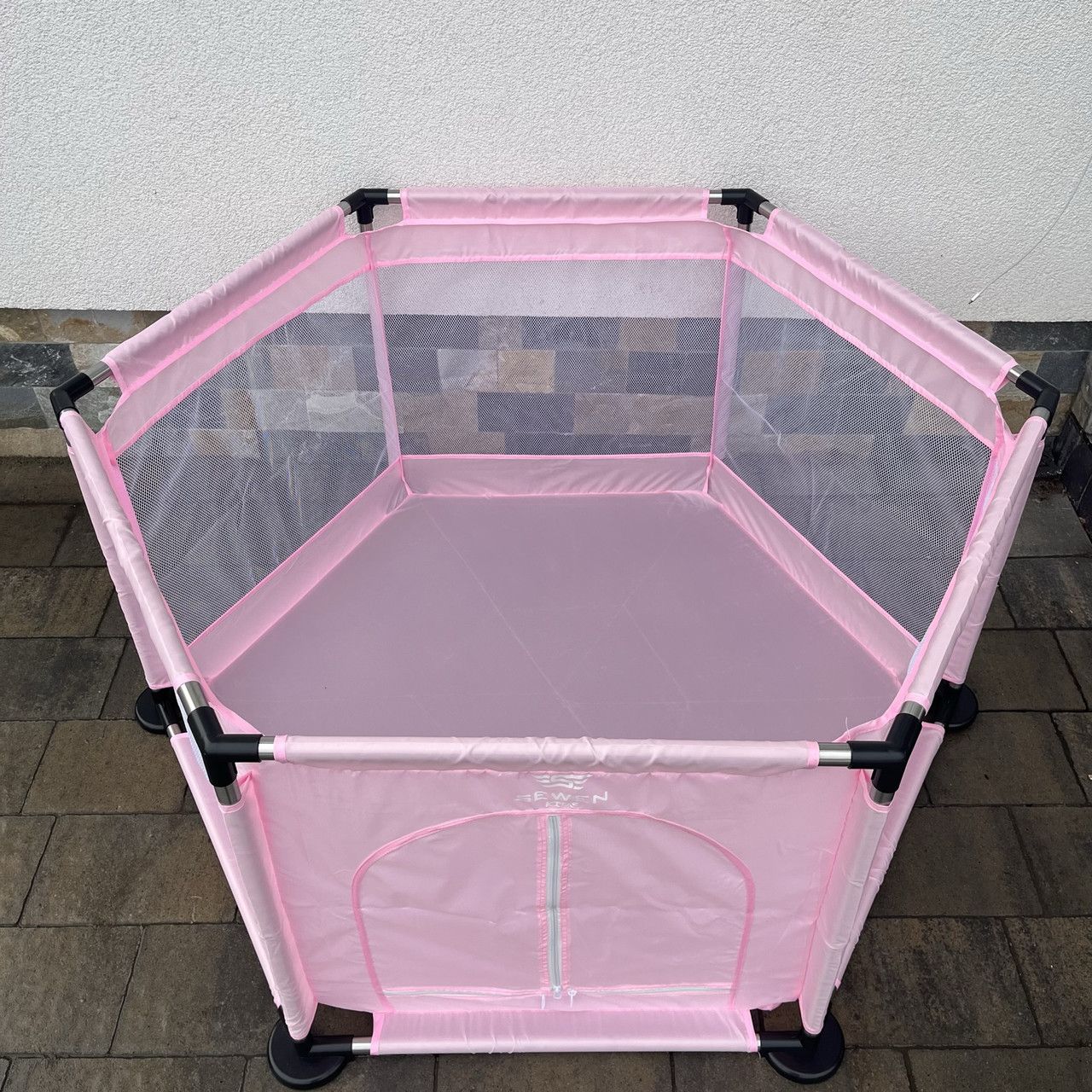 Манеж изготовлен из прочной ткани в сочетании с нержавеющей сталью, можно использовать долгие годы. Трубки из нержавеющей стали в сочетании с большими подставками обеспечат устойчивость ручки. С 5 сторон имеется сетка, которая позволяет наблюдать за происходящим внутри, а также обеспечивает адекватную циркуляцию воздуха. Манеж имеет вход на тройную молнию для удобного входа и выхода.