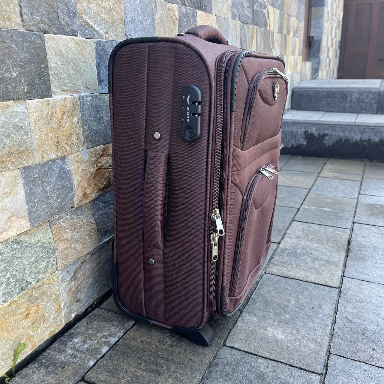 Дорожный чемодан на двух колесах Wings (Вингс) произведен из надежного и прочного синтетического тканевого материала — полиэстер марки 1200D. Этот материал легкий, износостойкий, эластичный, непромокаемый. Каркас придает жесткую форму чемодану – вы можете не бояться его максимально нагрузить.