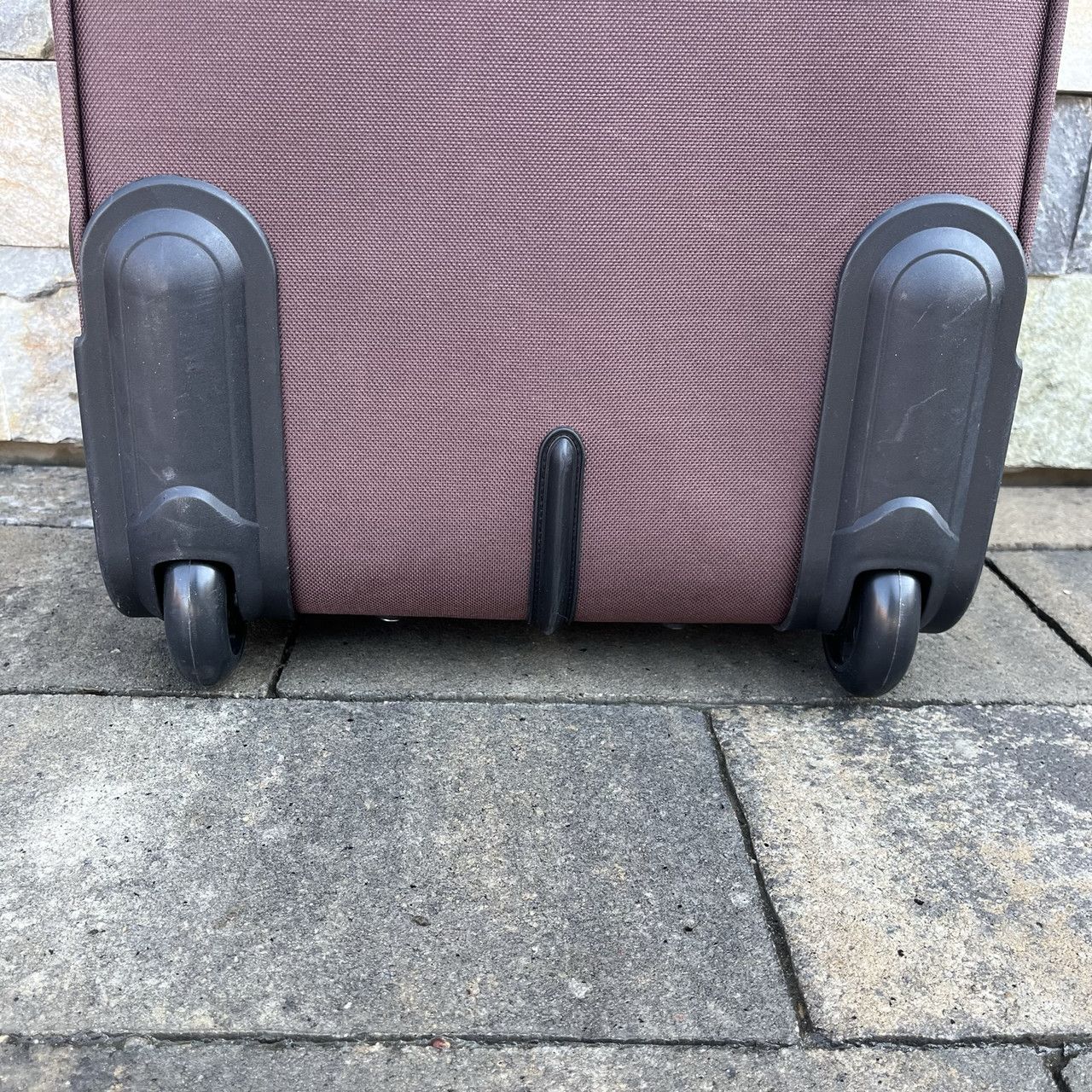 Его корпус оснащен двумя независимыми прочными полиуретановыми колесами. Они позволяют владельцу катить чемодан практически без особых усилий и не ощущать тяжести на руки. Легкому передвижению способствует и удобная телескопическая ручка с возможностью фиксации в двух положениях.