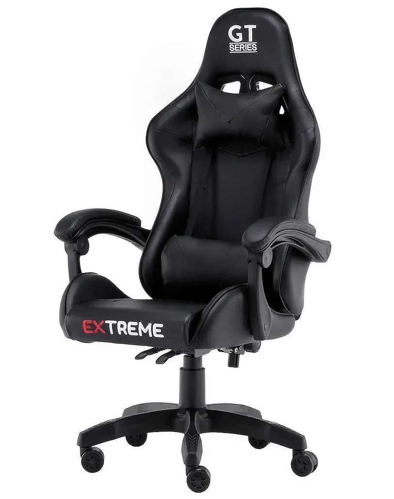 Ігрові крісла Extreme GT — це спортивні сидіння з плавно регульованою спинкою та подушками. Бренд Extreme характеризується високою якістю матеріалів, які застосовуються для виробництва цих часом енергійно і довго використовуваних крісел. Грати годинами на цьому кріслі – справжнє задоволення, а додаткові подушки для підтримки голови та попереку лише підсилюють відчуття високого комфорту. Ідеально підходить для геймерів, а також для людей, які проводять багато годин за комп'ютером або письмовим столом.