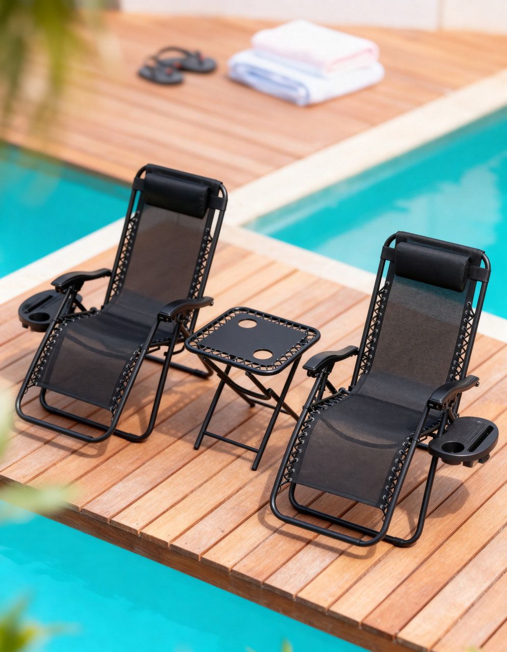 Привіт! 👋 Хто з Вас мріє про ідеальне ледарювання на свіжому повітрі? Ми — однозначно! Саме тому мусимо Вам показати цей супер набір лежаків зі столиком, який підкорив наші серця. Ідеальний для балкона, тераси чи саду — де завгодно, де ви забажаєте хвилини релаксу. Найкраще те, що все складається! Більше жодних проблем зі зберіганням, коли сезон закінчиться. Просто скласти і сховати — легко, чи не так? А ці маленькі столики для напоїв та закусок — це повний game changer. 🍹 Книга, холодний напій, сонце... життя стає простішим. Подумайте, скільки зустрічей із друзями та сімейних посиденьку прикрасить цей набір. Обов'язково напишіть, де б ви його поставили!
