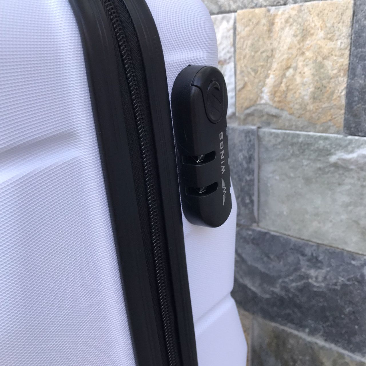 Розкішний чемодан від відомої компанії WINGS для найвимогливіших клієнтів. Сучасна і легка модель c дворівневою телескопічною ручкою виконана з міцного пластику ABS Plus зі стійкою до подряпин поверхнею. Зовнішні ручки валізи гумові та приємні на дотик. Кодовий замок запобігає проникненню небажаних гостей. У валізу вмонтована міцна дюралюмінієва рама. Кожна з валіз обладнана чотирма поворотними колесами, що забезпечують стабільність і легкість руху на будь-якій поверхні.