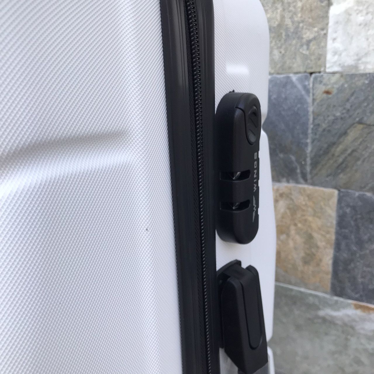 Розкішний чемодан від відомої компанії WINGS для найвимогливіших клієнтів. Сучасна і легка модель c дворівневою телескопічною ручкою виконана з міцного пластику ABS Plus зі стійкою до подряпин поверхнею. Зовнішні ручки валізи гумові та приємні на дотик. Кодовий замок запобігає проникненню небажаних гостей. У валізу вмонтована міцна дюралюмінієва рама. Кожна з валіз обладнана чотирма поворотними колесами, що забезпечують стабільність і легкість руху на будь-якій поверхні.