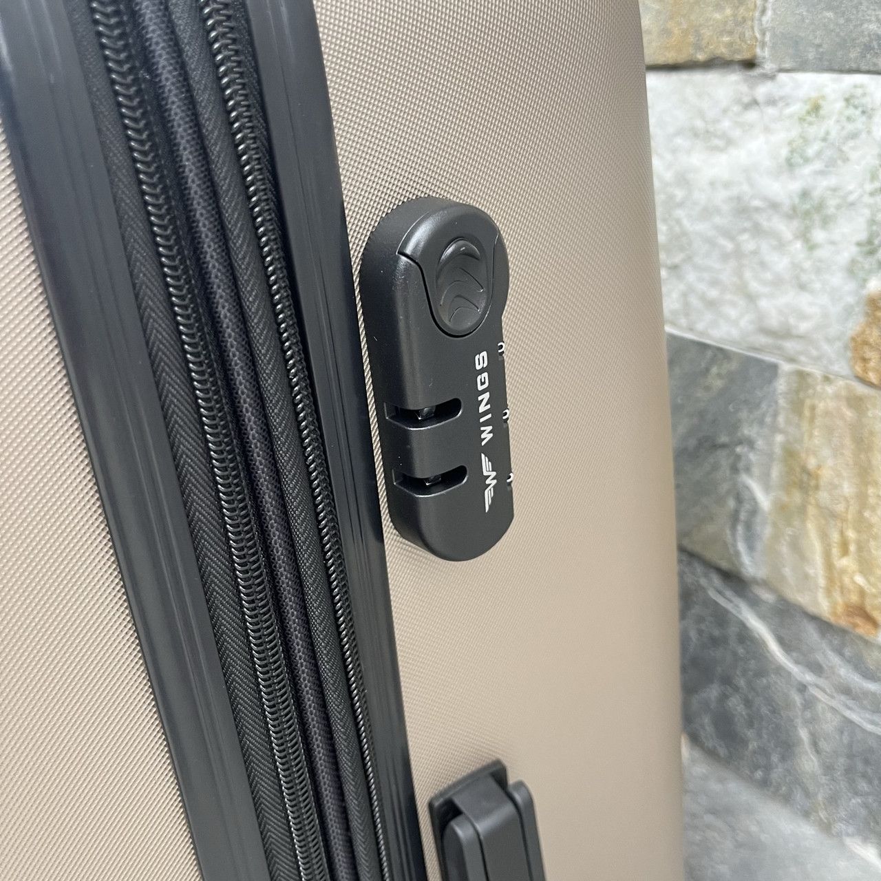 Розкішний валізу відомої компанії WINGS для самих вимогливих клієнтів. Сучасна, легка модель з дуже міцного і стійкого до подряпин пластику ABS Plus з дворівневою телескопічною ручкою. Зовнішні, приємні на дотик прогумовані ручки і кодовий замок для запобігання несанкціонованого доступу. У валізу вбудований міцний дюралюмінієва каркас. Оснащений чотирма поворотними гумовими колесами , що забезпечують стійкість і легкість руху в кожному напрямку. Інтер'єр світлого кольору розділений блискавкою на дві функціональні камери.