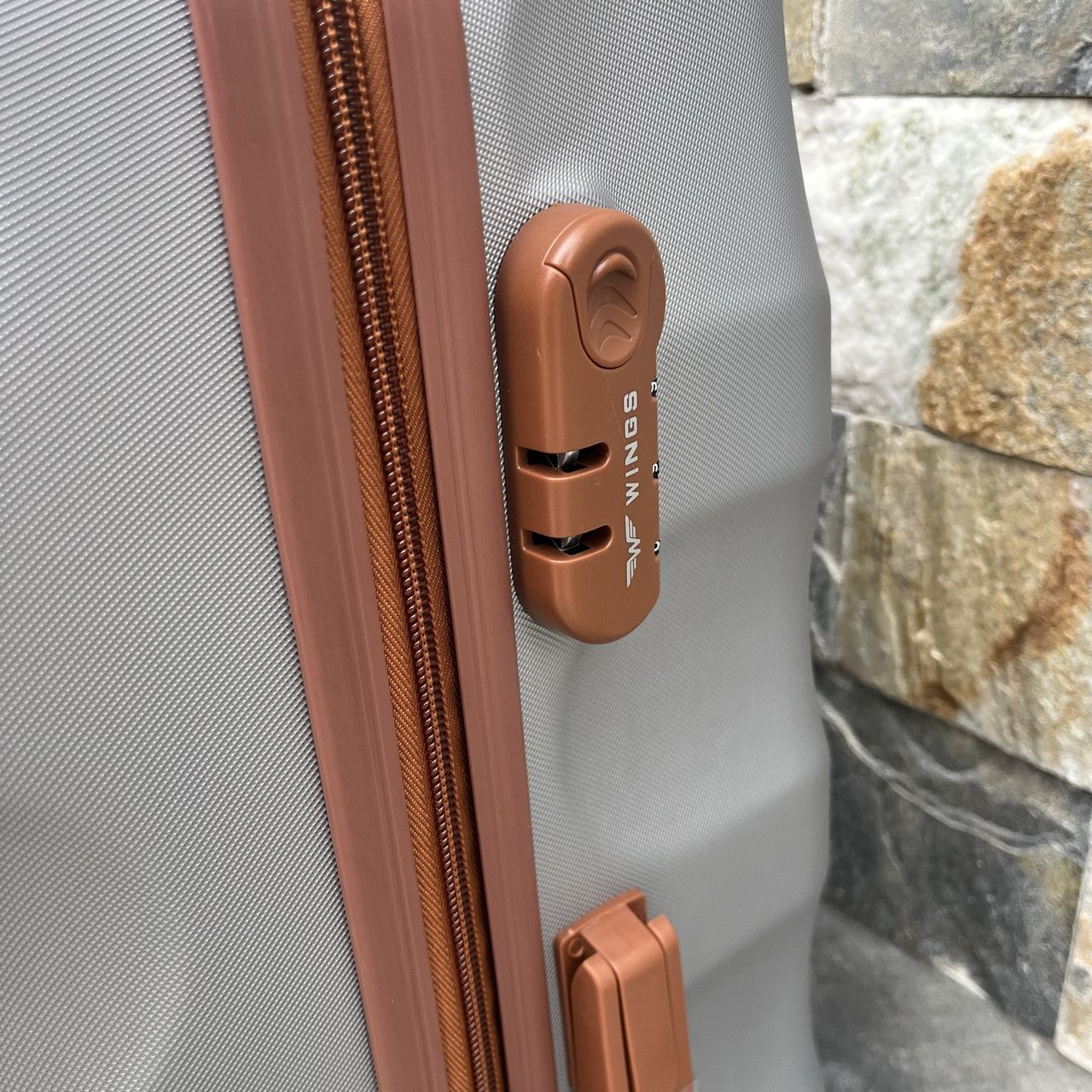 Розкішний валізу відомої компанії WINGS для самих вимогливих клієнтів. Сучасна, легка модель з дуже міцного і стійкого до подряпин пластику ABS Plus з дворівневою телескопічною ручкою. Зовнішні, приємні на дотик прогумовані ручки і кодовий замок для запобігання несанкціонованого доступу. У валізу вбудований міцний дюралюмінієва каркас. Оснащений чотирма поворотними гумовими колесами , що забезпечують стійкість і легкість руху в кожному напрямку. Інтер'єр світлого кольору розділений блискавкою на дві функціональні камери.