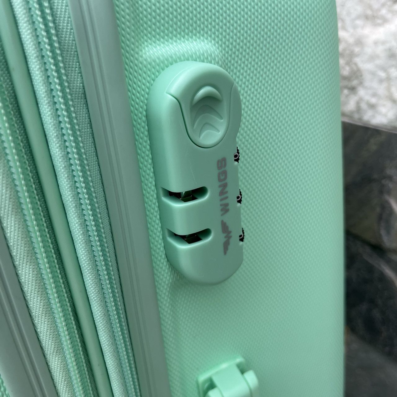 Розкішний валізу відомої компанії WINGS для самих вимогливих клієнтів. Сучасна, легка модель з дуже міцного і стійкого до подряпин пластику ABS Plus з дворівневою телескопічною ручкою. Зовнішні, приємні на дотик прогумовані ручки і кодовий замок для запобігання несанкціонованого доступу. У валізу вбудований міцний дюралюмінієва каркас. Оснащений чотирма поворотними гумовими колесами , що забезпечують стійкість і легкість руху в кожному напрямку. Інтер'єр світлого кольору розділений блискавкою на дві функціональні камери.