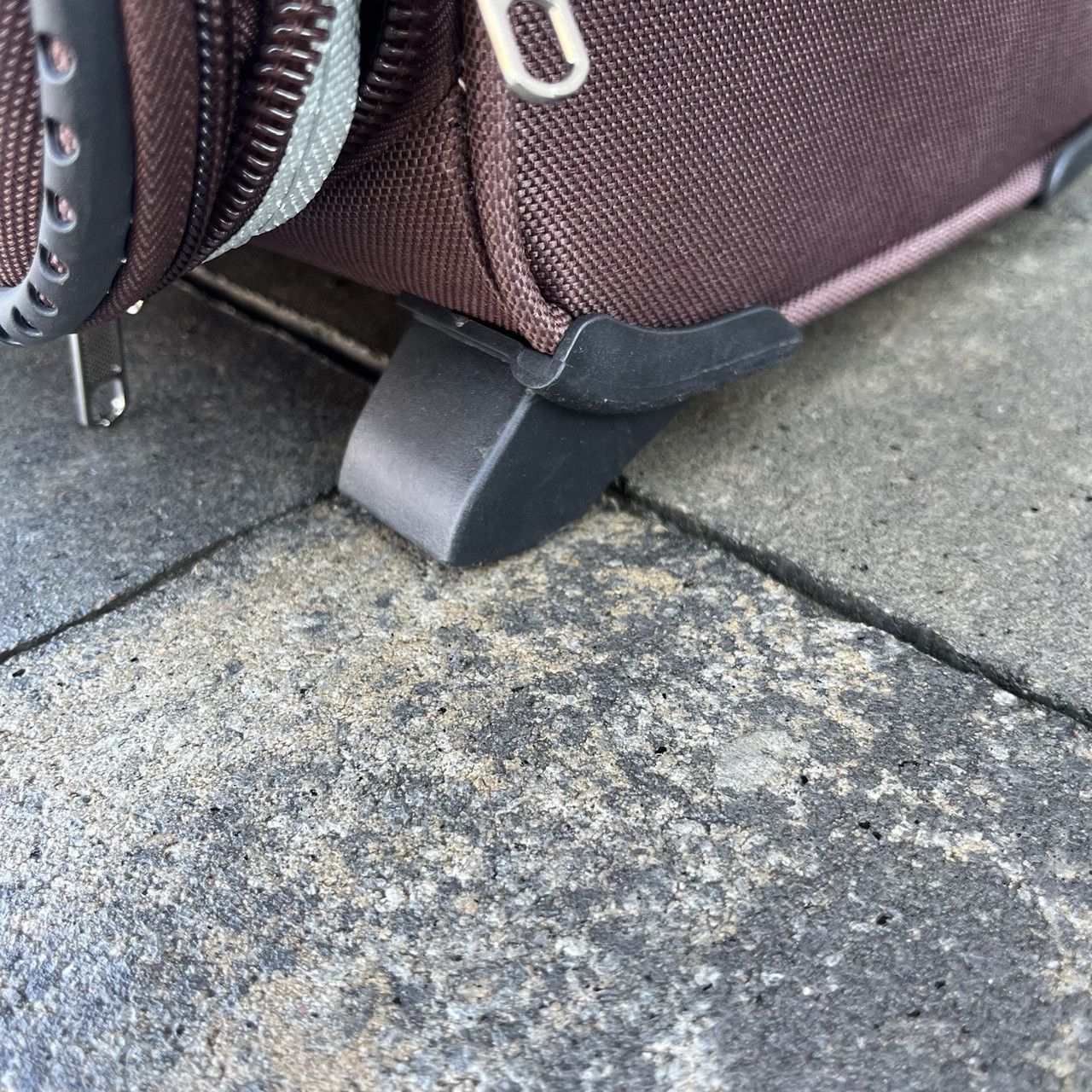 Його корпус оснащений двома незалежними міцними поліуретановими колесами. Вони дозволяють власнику котити валізу практично без особливих зусиль і не відчувати важкості на руки. Легкому пересуванню сприяє і зручна телескопічна ручка з можливістю фіксації в двох положеннях.