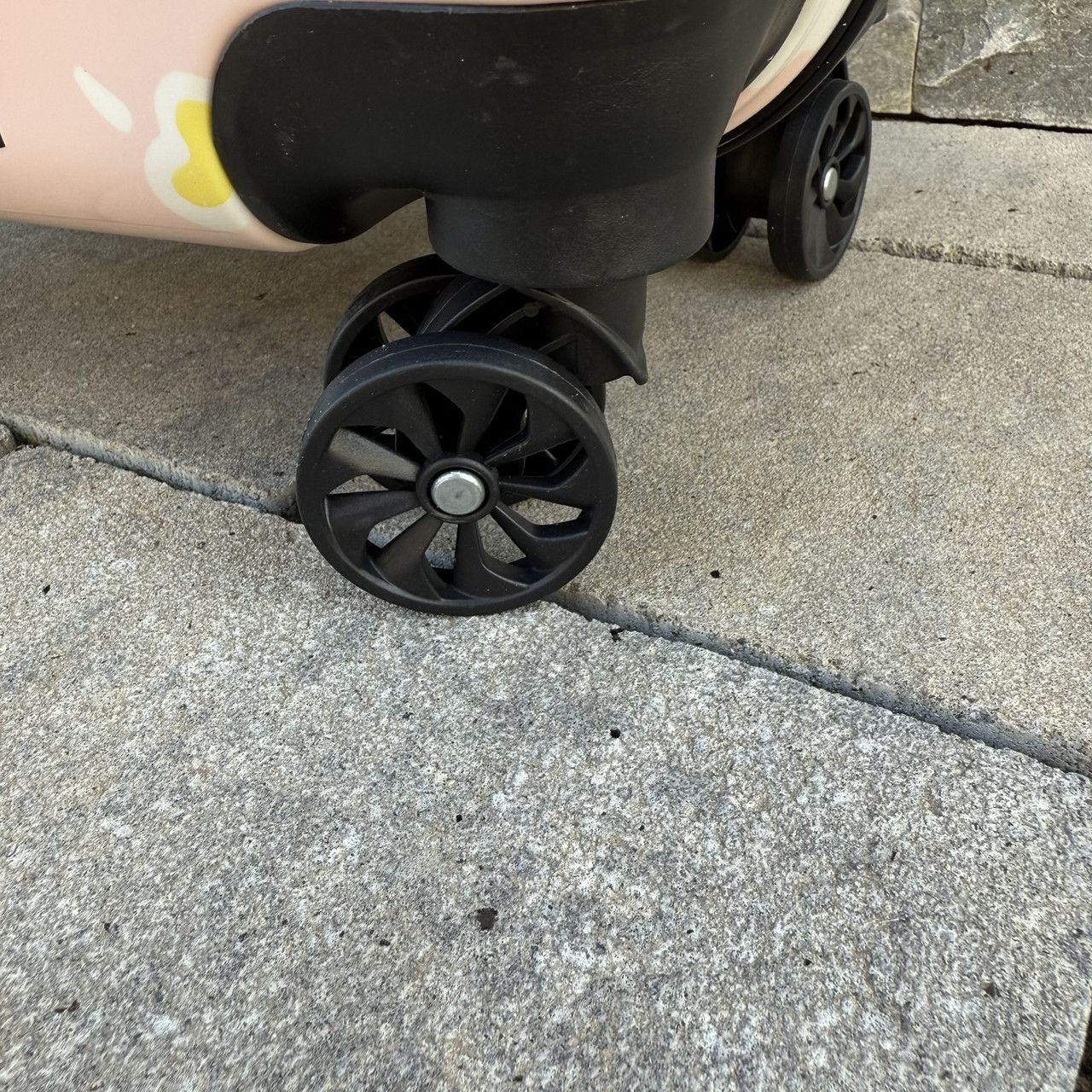 Валіза має телескопічну висувну ручку та кодовий замок, а також оснащена чотирма колесами, стійкими до навантажень на 360 градусів.
