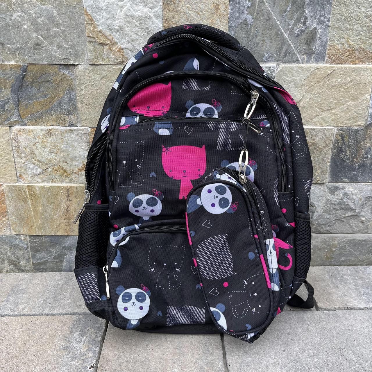 Рюкзак школьный детский с пеналом Wings PANDA Черный