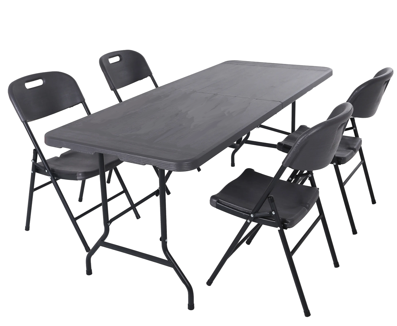 СТІЛ З КРІСЛАМИ - комплект садових меблів ідеально підходить для всіх вечірок і заходів на свіжому повітрі. Він надзвичайно практичний і зручний. Має міцну конструкцію та товсту стільницю - все це стійке до несприятливих погодних умов. Всього за кілька простих рухів ви можете створити у своєму саду ідеальну зону відпочинку для фестивалів, великих заходів та барбекю.