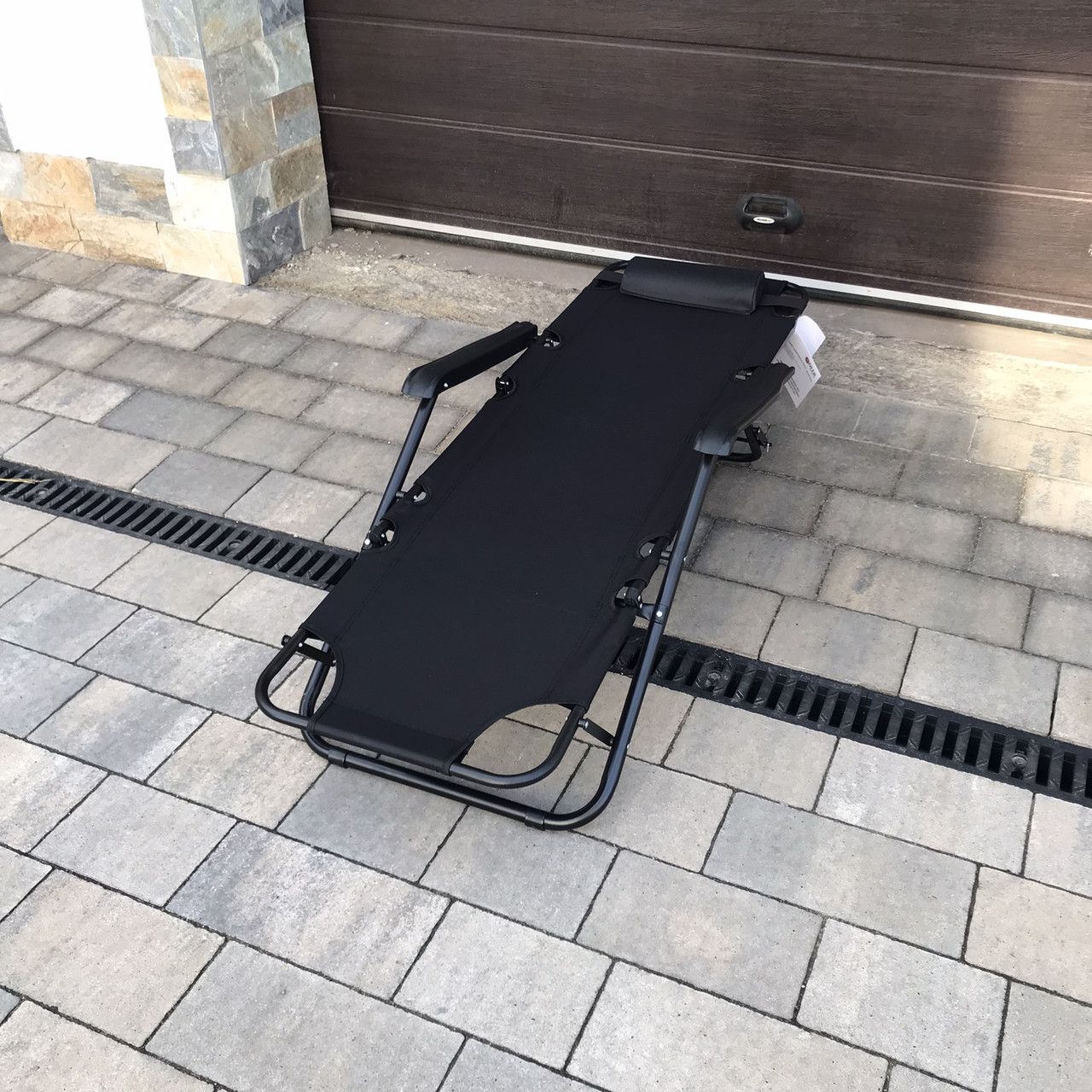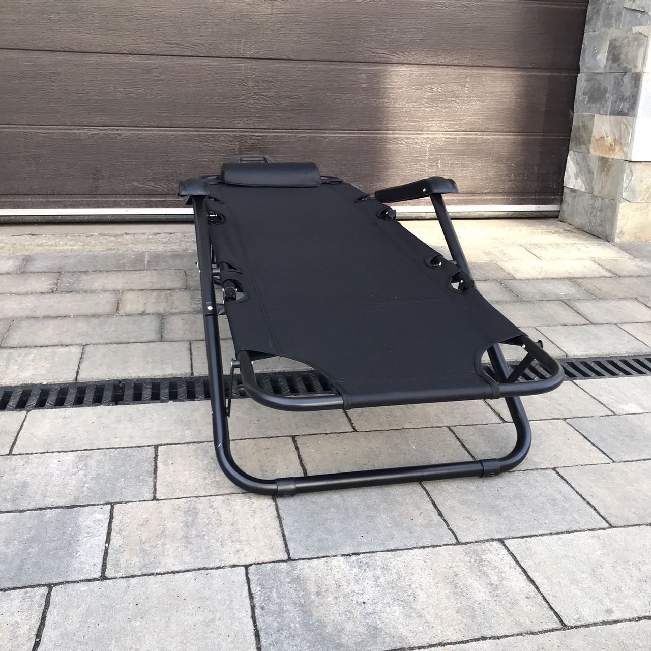 Шезлонг має регульований підголівник з розмірами 30 см в ширину і 14 см у висоту.