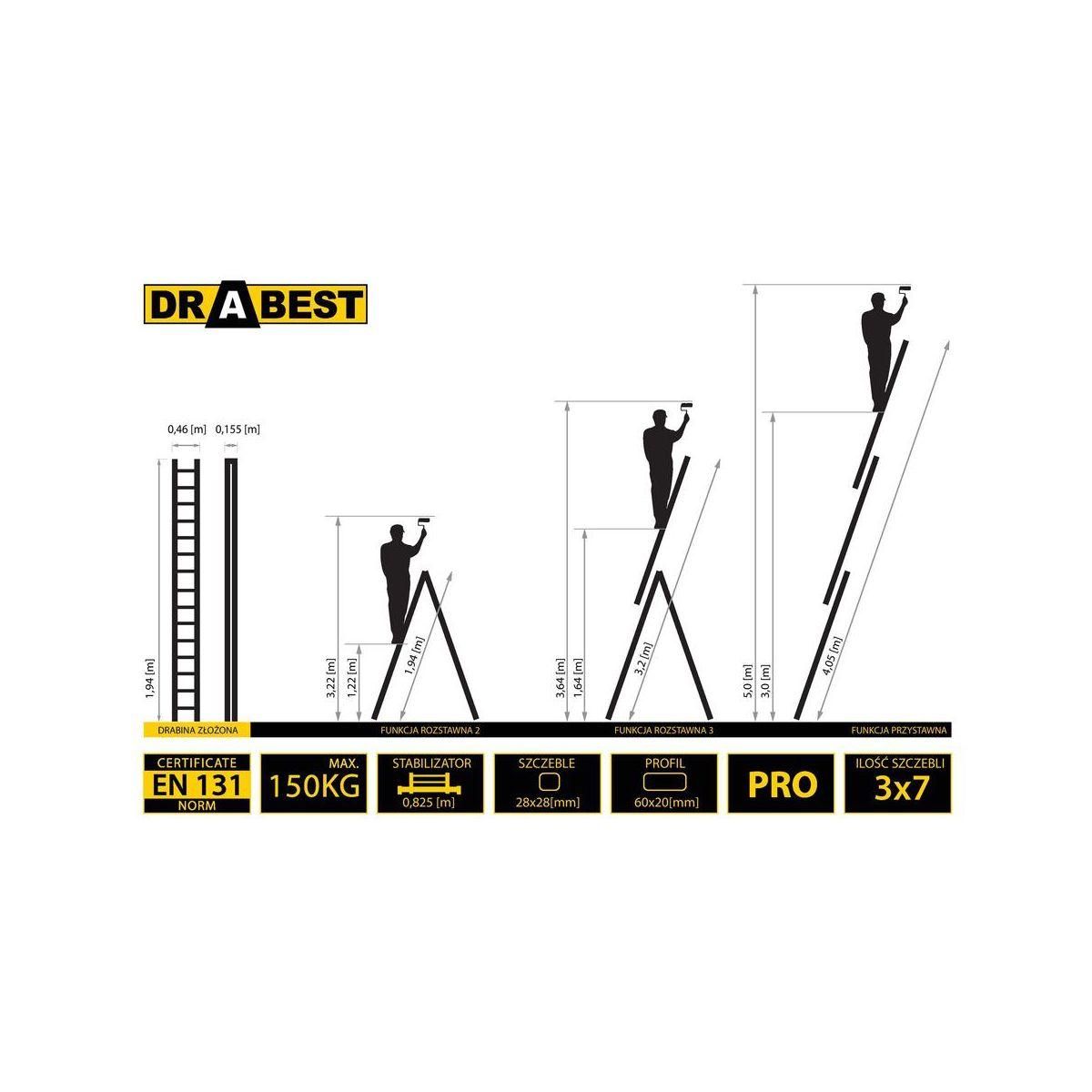 Лестница 3-секционная универсальная Drabest PRO 3х7