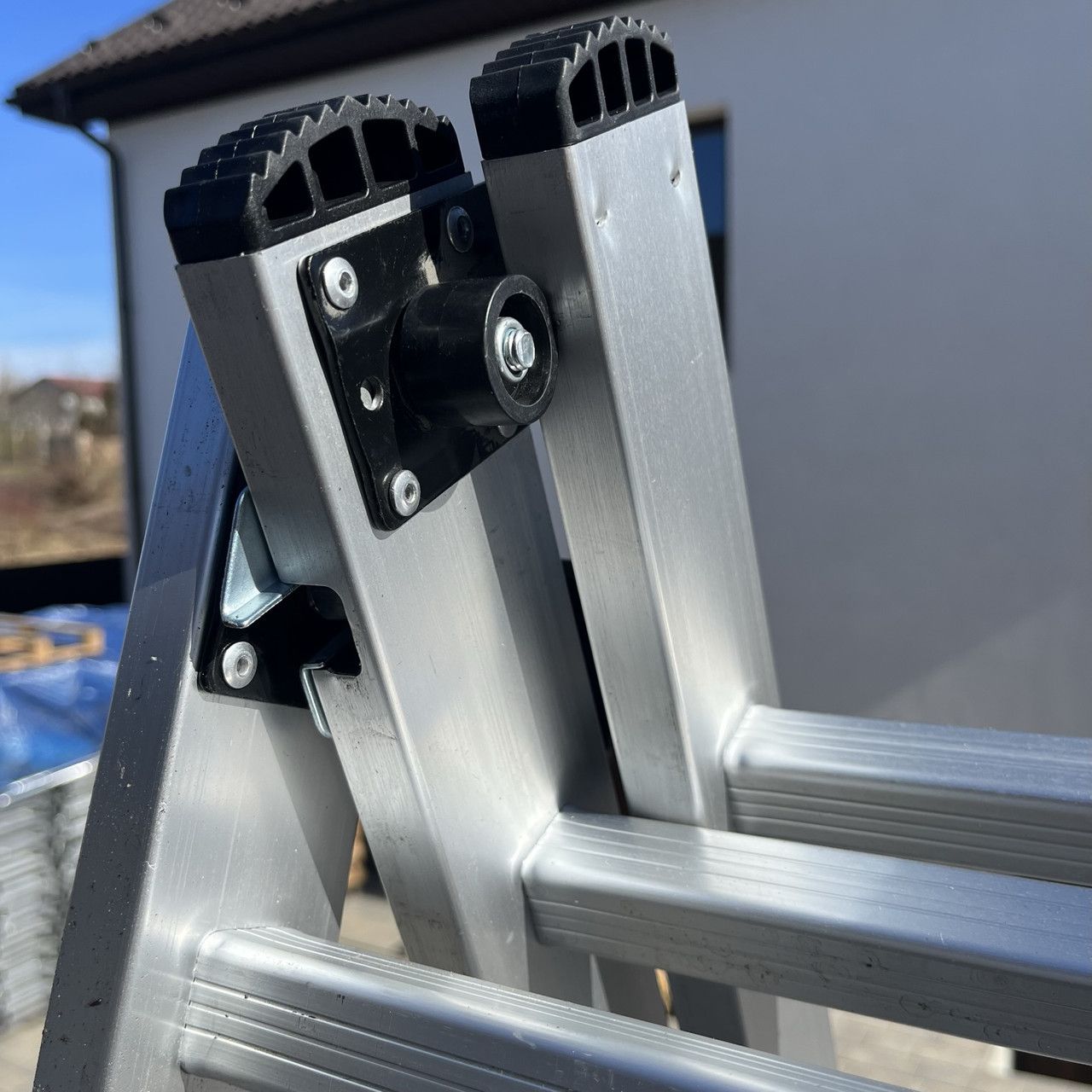 Ножки лестницы и стабилизатора обработаны противоскользящим резиновым пластиком, чтобы предотвратить скольжение. Стабилизационная планка на лестницах HIGHER фиксируется 4 винтами для дополнительной безопасности. Пластиковые заглушки установлены на концах лестницы и защищают острые концы профилей лестницы от непреднамеренного травмирования. Кроме того, лестница оснащена защитными заглушками со специальной усиленной конструкцией рамы, изготовленной из высокопрочного пластика. Специальные заглушки дополнительно выполняют очень важную функцию: они защищают место крепления стабилизатора к стойкам лестницы. Это предотвращает трение металла о металл.