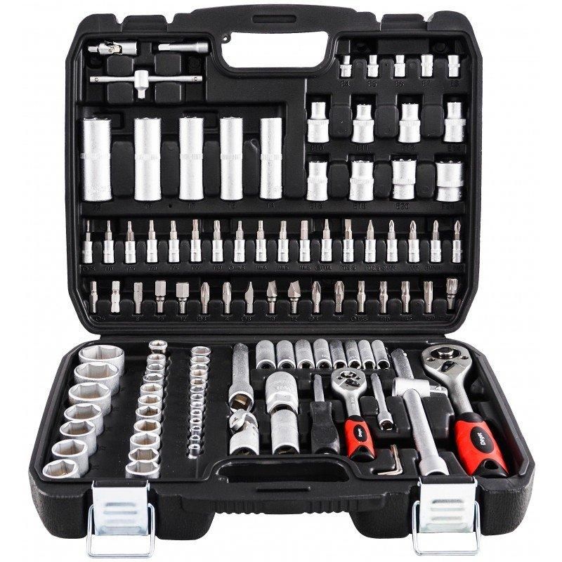 Качественный набор торцевых ключей отлично подойдет как для профессиональной мастерской, так и домашнего гаража. Набор состоит из 108 элементов разного размера, что позволит качественно выполнить многие мастер-классы. Торцевые ключи и торцевой привод изготовлены из прочной хромованадиевой инструментальной стали CR-V, благодаря чему они надолго сохранят свой первоначальный внешний вид. Набор позволяет работать с большими нагрузками и точностью, позволяет выполнять многие сервисные работы, связанные с откручиванием и закручиванием резьбовых соединений разных номинальных размеров.