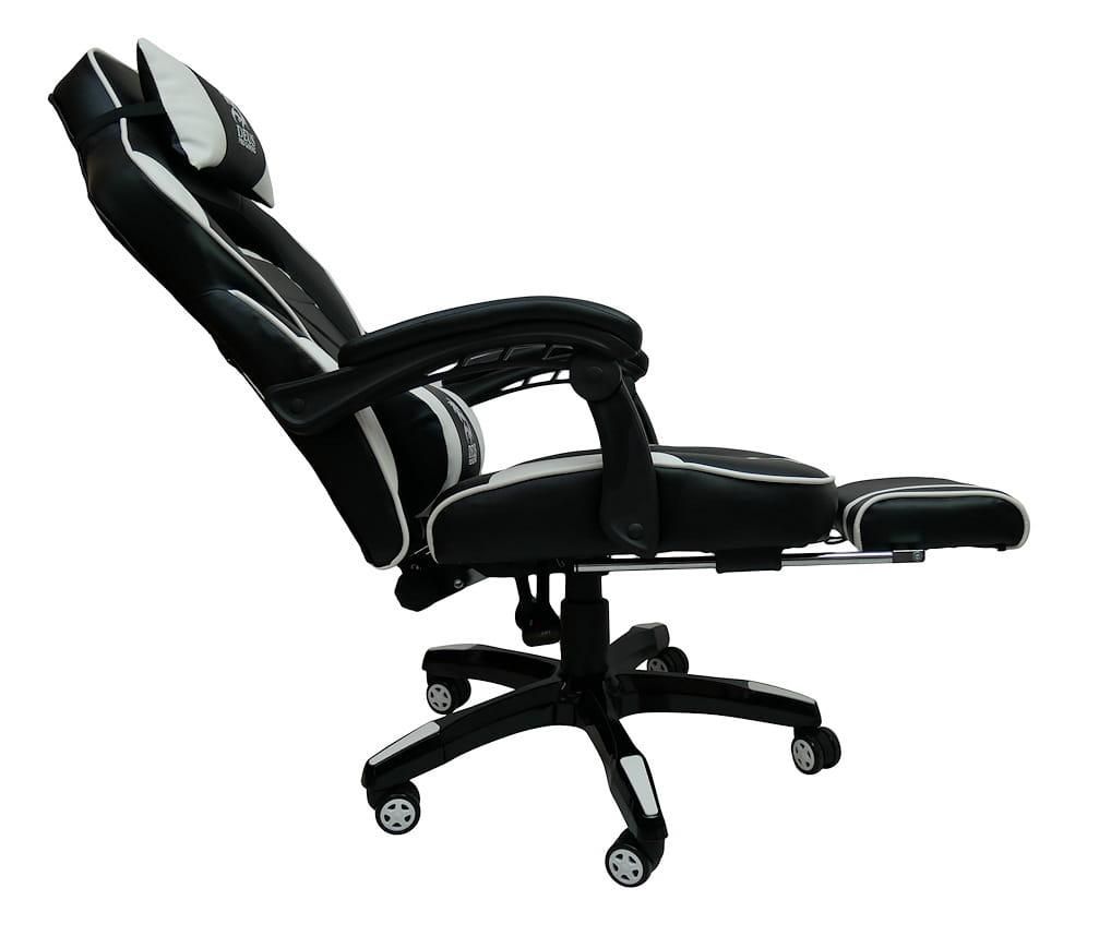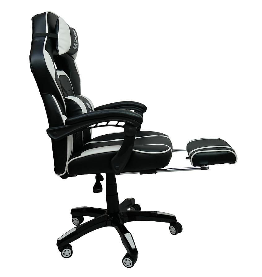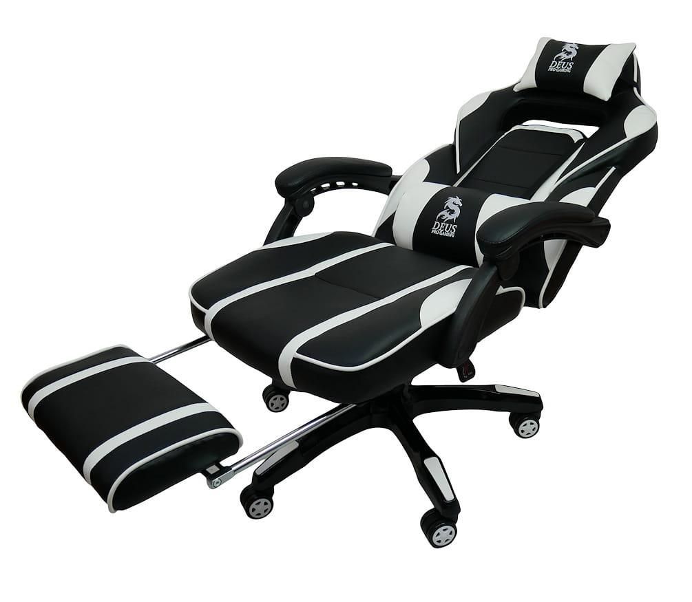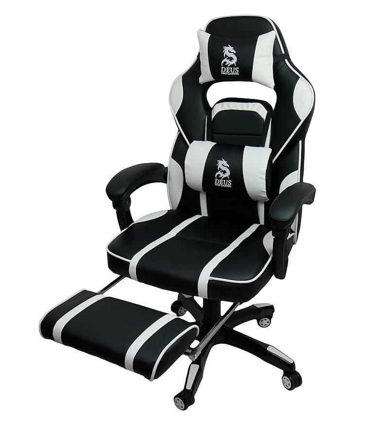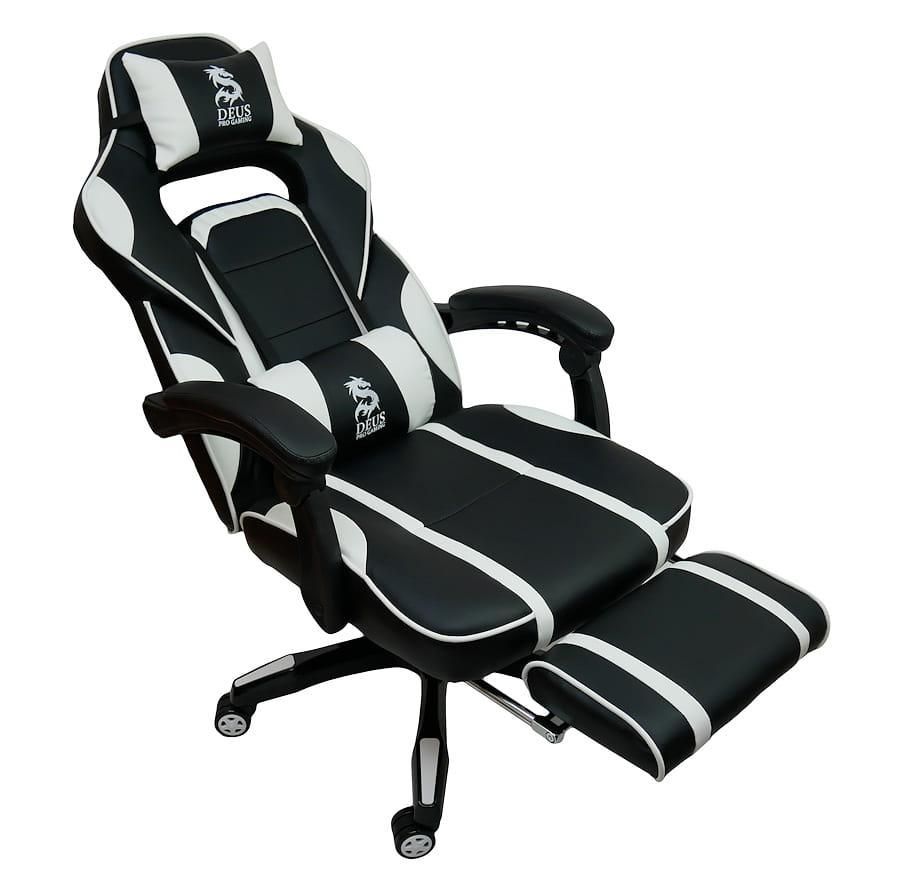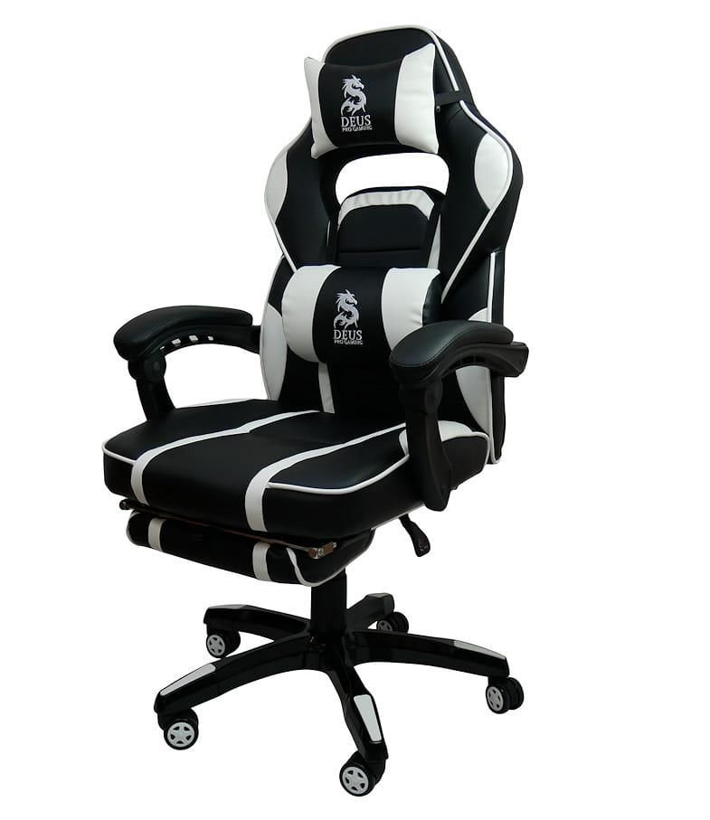 Крісла DEUS PRO GAMING - це спортивні сидіння найвищої якості з повністю регульованою спинкою і висувною підставкою для ніг. Характерною особливістю бренду є висока якість матеріалів, з яких виготовляються ці часто енергійно та довго використовувані крісла. Багато годин за грою на цьому кріслі – справжнє задоволення, а додаткові подушки, що підтримують голову та поперек, лише підсилюють відчуття високого комфорту.Механіка крісла виготовлена з високоякісної сталі, тому вам не доведеться турбуватися про поломку поперечини чи підлокітника. Усі пластикові елементи, які легко пошкоджуються під час інтенсивного використання крісла, зведені до мінімуму.Модель GAMER DEUS LARGE - це спортивне крісло, яке задовольнить вимоги навіть найвибагливішого гравця. Інтенсивні вставки – це гідна ін’єкція адреналіну та бадьорості на довгі години, проведені перед комп’ютером чи консоллю.Технічні дані та параметри: Максимальна висота: 125 см Максимальна висота до сидіння: 53 см Мінімальна висота до сидіння: 43 см Розмір сидіння: 54х47 см Загальна ширина з підлокітниками: 68 см Мінімальна висота до підлокітників 65 см Ширина підставки: 66 см Максимальне навантаження: 120 кг Колір: чорний/білий Матеріал: високоякісна екошкіра М'які підлокітники Плавне регулювання спинки з блокадою Прогумовані колеса - не дряпають підлогу Регульована висота, поворот на 360 градусів М'яка висувна підставка для ніг В комплекті дві подушки Час складання: 5-10 хвилин