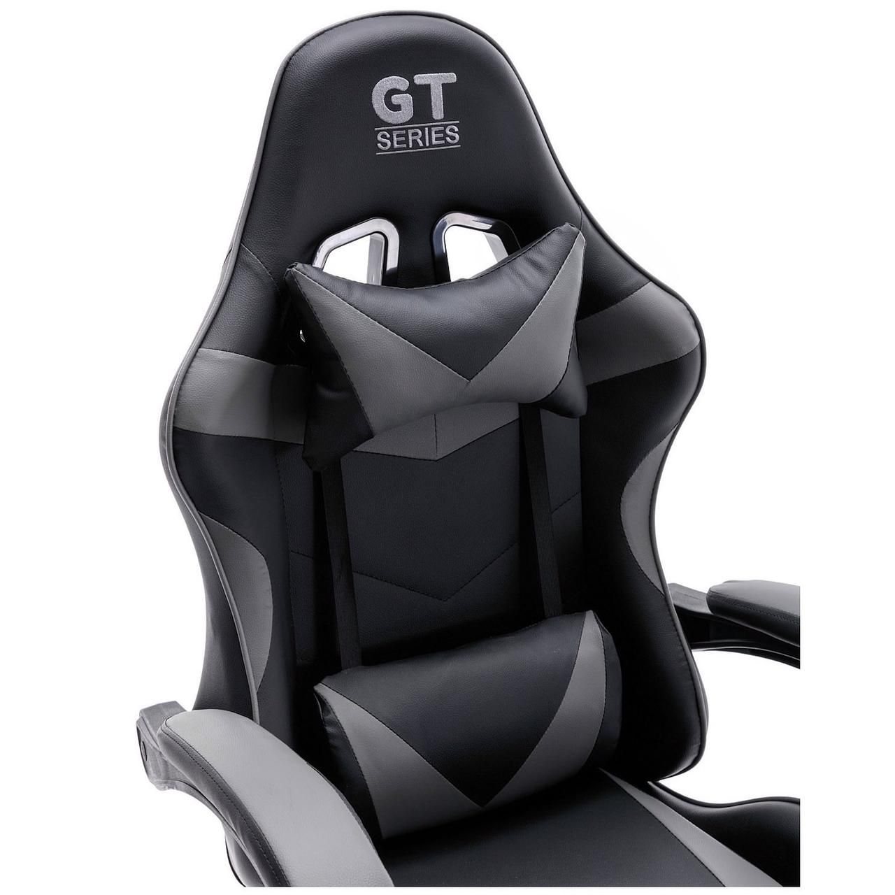 Ігрові крісла Extreme GT — це спортивні сидіння з плавно регульованою спинкою та подушками. Бренд Extreme характеризується високою якістю матеріалів, які застосовуються для виробництва цих часом енергійно і довго використовуваних крісел. Грати годинами на цьому кріслі – справжнє задоволення, а додаткові подушки для підтримки голови та попереку лише підсилюють відчуття високого комфорту. Ідеально підходить для геймерів, а також для людей, які проводять багато годин за комп'ютером або письмовим столом.Характеристики: Висота крісла: 133 см Максимальна висота до сидіння: 51 см Мінімальна висота до сидіння: 41 см Розмір сидіння: 50х49 см Загальна ширина з підлокітниками: 64 см Ширина основи: 65 см Максимальне навантаження: 120 кг Колір: чорно-сірий Матеріал: високоякісна екошкіра М'які регульовані підлокітники - відкидаються разом зі спинкою Плавне регулювання спинки з блокадою Прогумовані колеса, які не дряпають ламінат та дерев'яну підлогу Регульована висота, поворот на 360 градусів У комплект входять дві регульовані подушки
