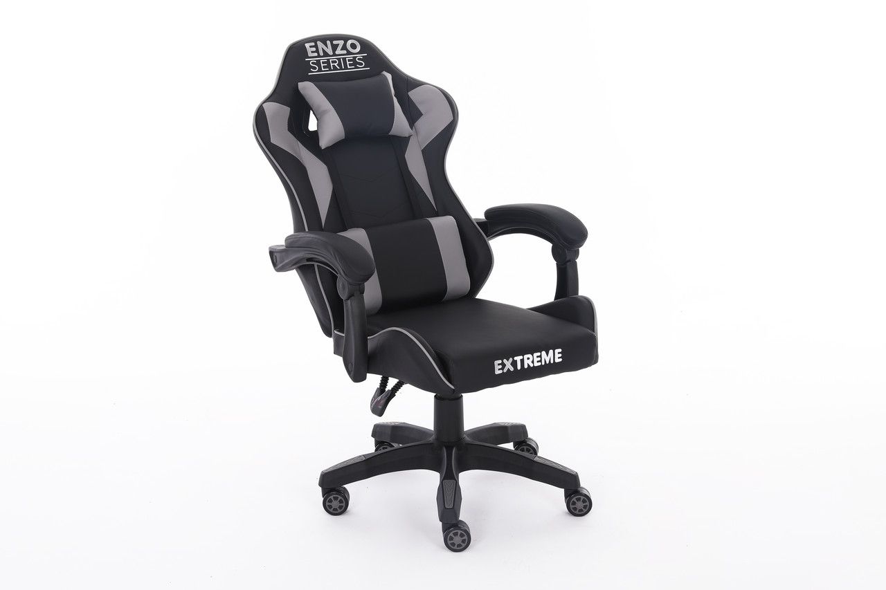 Ігрові крісла Extreme ENZO — це комп'ютерні крісла з плавно регульованою спинкою та подушками. Бренд Extreme характеризується високою якістю матеріалів, які застосовуються для виробництва цих часом енергійно і довго використовуваних крісел. Грати годинами на цьому кріслі – справжнє задоволення, а додаткові подушки для підтримки голови та попереку лише підсилюють відчуття високого комфорту. Ідеально підходить для геймерів, а також для людей, які проводять багато годин за комп'ютером або письмовим столом.