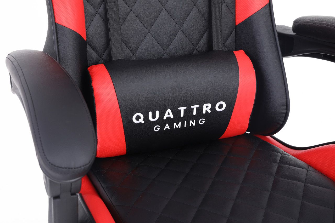 CARBON Quattro Gaming має оббивку з високоякісної екошкіри з ромбоподібною строчкою сидінні та спинці. Унікальністю даної моделі є карбонові вставки, що придають кріслу особливої елегантності.