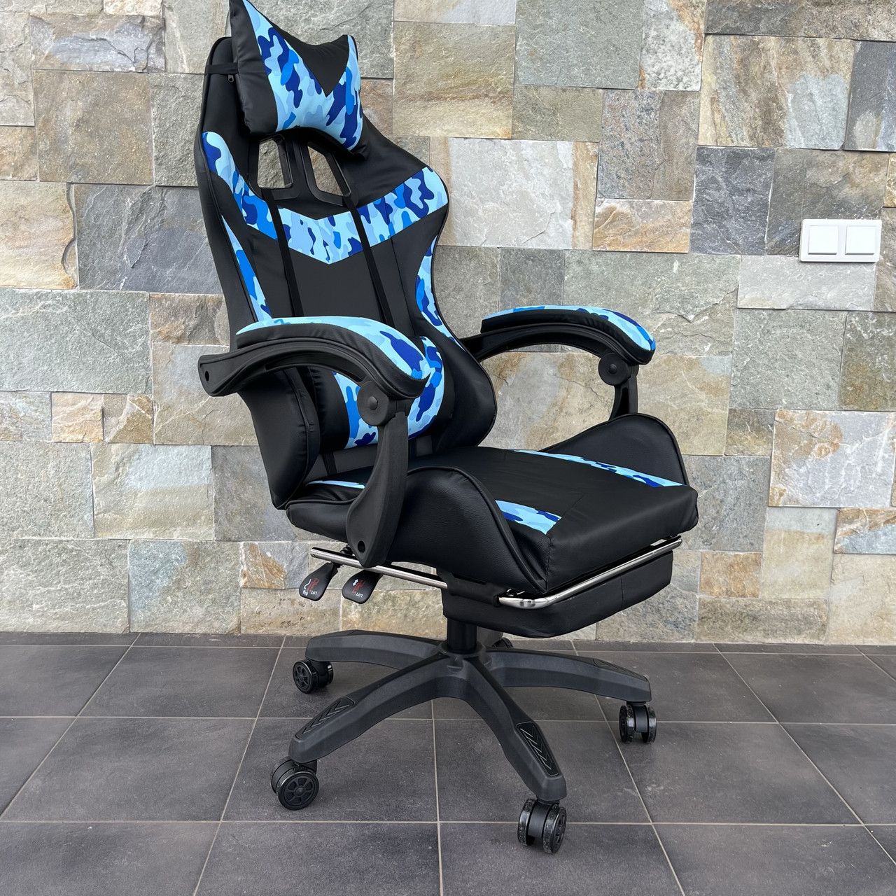 Комп‘ютерне крісло PRESTIGE Чорне з голубими камуфляжними вставками